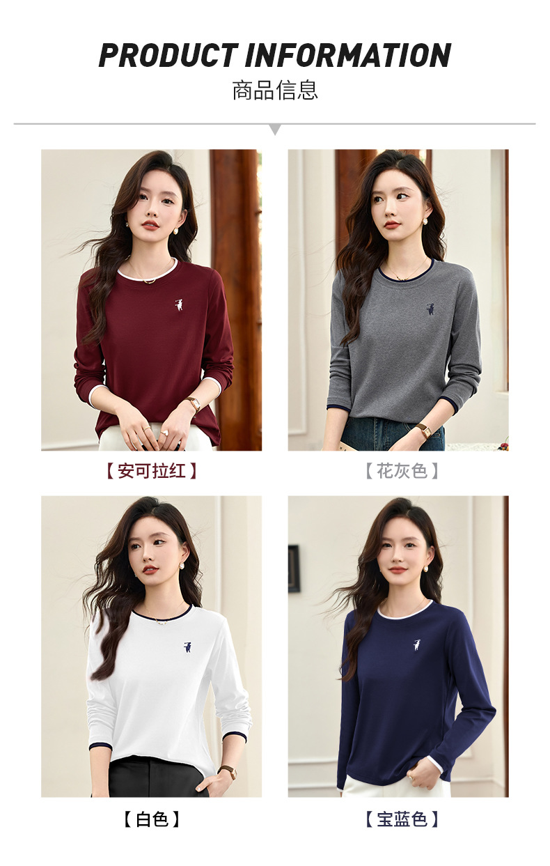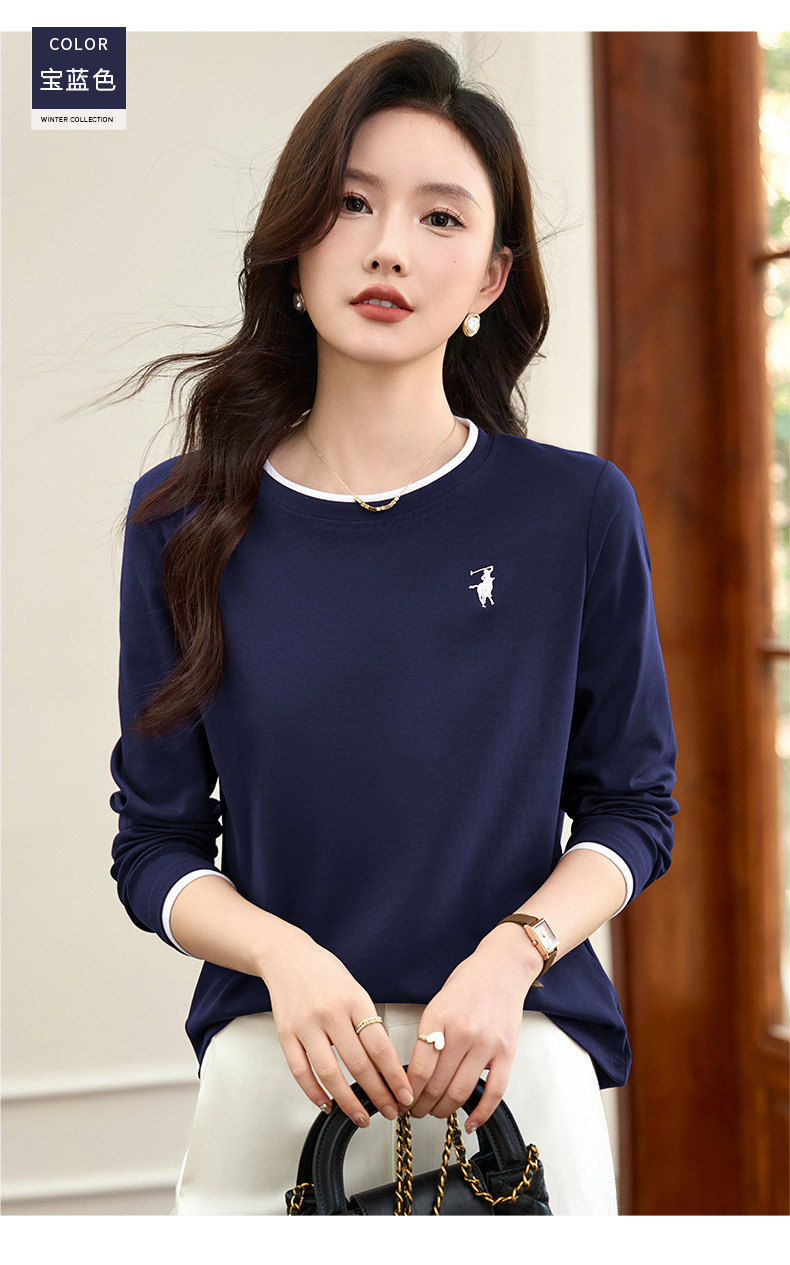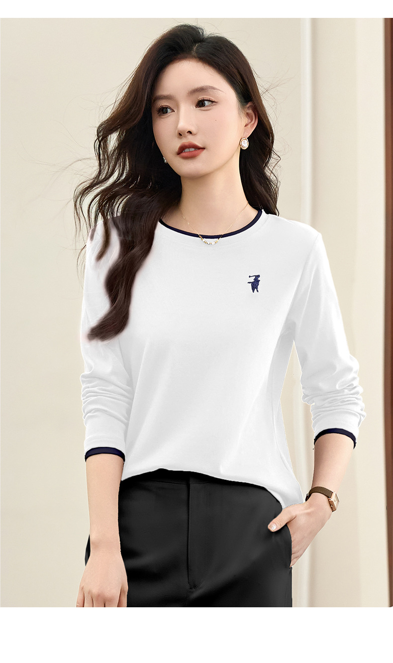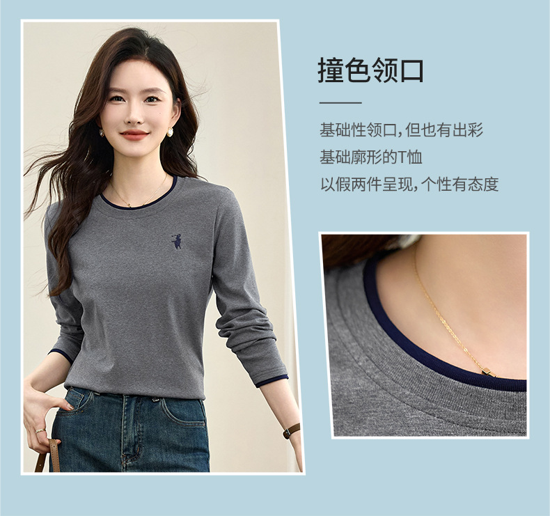 카운터 브랜드 봄과 가을 여성 크루 넥 티셔츠 긴 소매 얇은 유행 슬림 핏 올 매치 퓨어 코튼 하이 엔드 여성용 탑스토어 가기