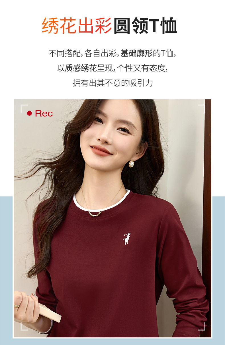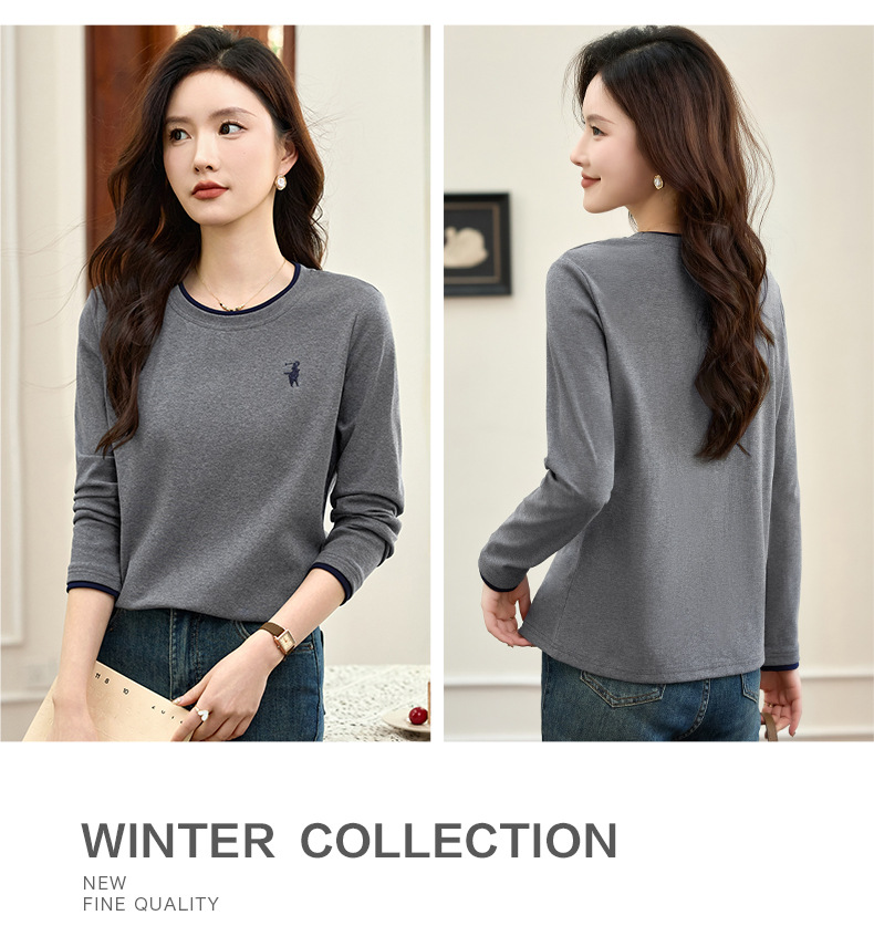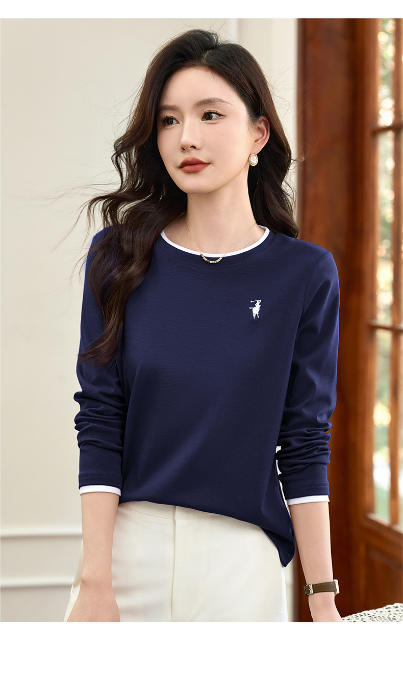 카운터 브랜드 봄과 가을 여성 크루 넥 티셔츠 긴 소매 얇은 유행 슬림 핏 올 매치 퓨어 코튼 하이 엔드 여성용 탑스토어 가기