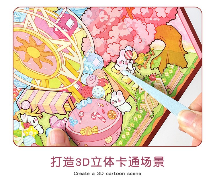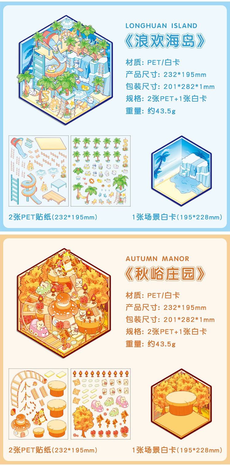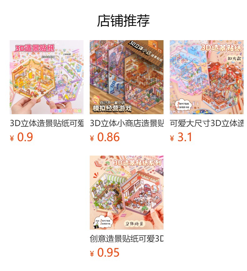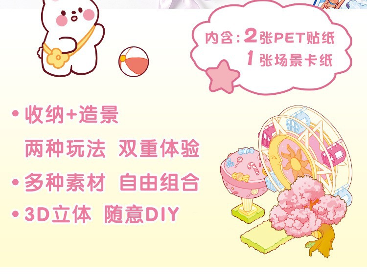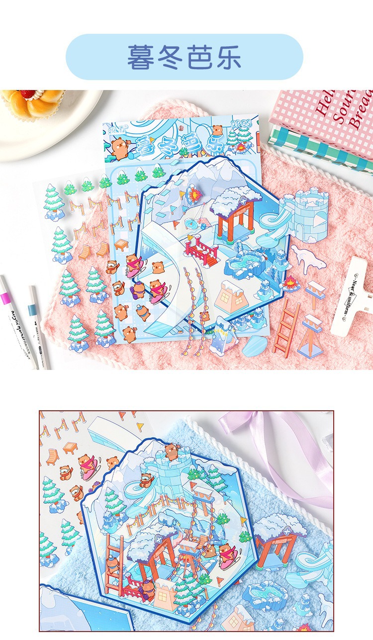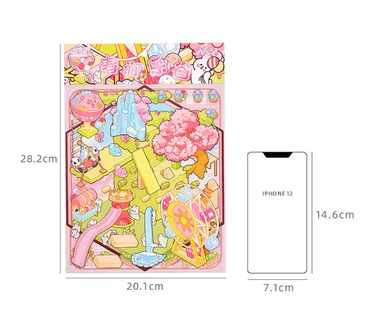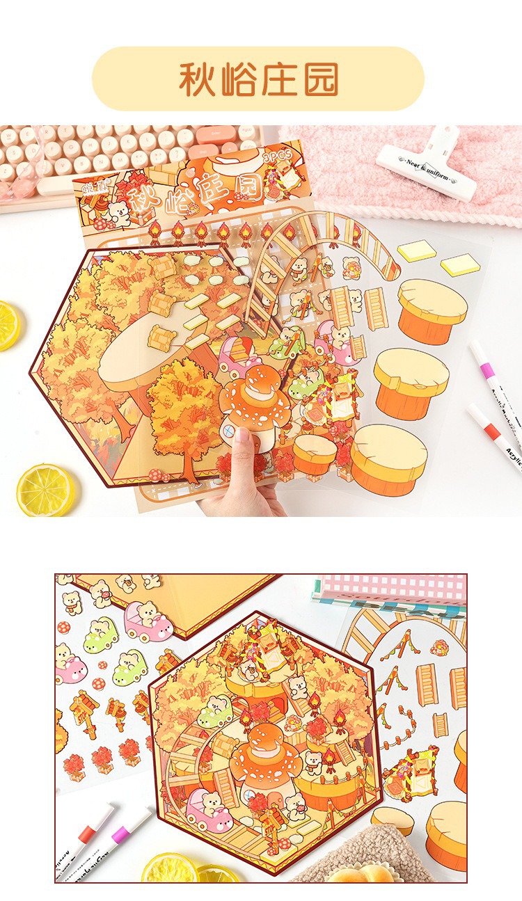 귀여운 봄 계곡 입체 조경 스티커 3D 시각 미니어처 장면 무컷팅 핸드북 스티커 해외 도매스토어 가기