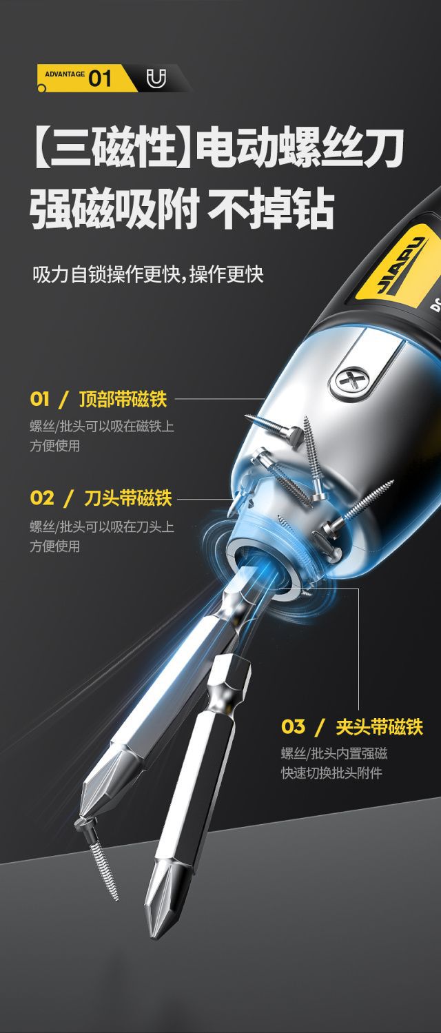 • 다음은 자동 토크 조정 기능이 있는 직선 핸들 모델 [나선형 강력 자석]입니다.