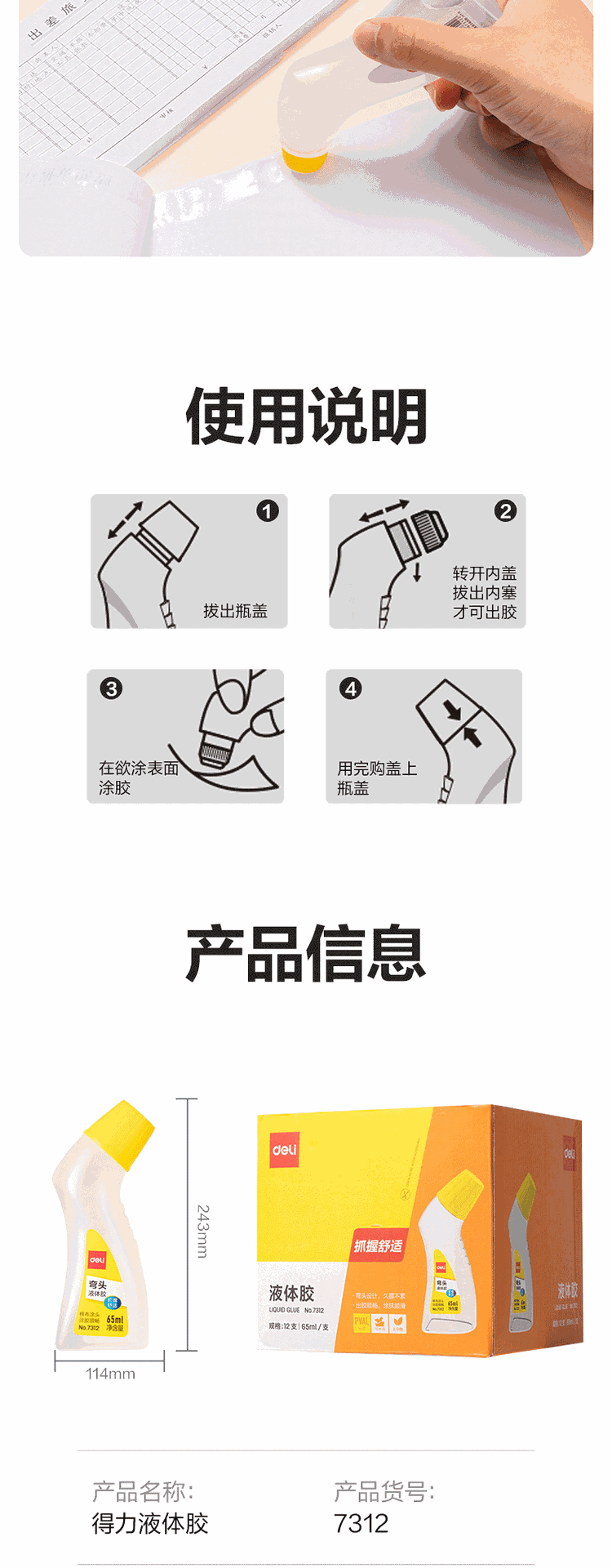 델리 문구 7312 사무실 접착제 학생 팔꿈치 액체 접착제 대용량 액체 접착제 배럴 도매스토어 가기