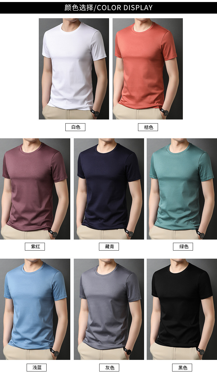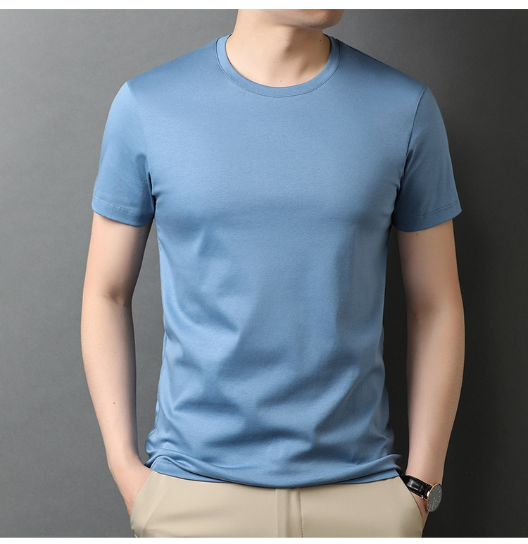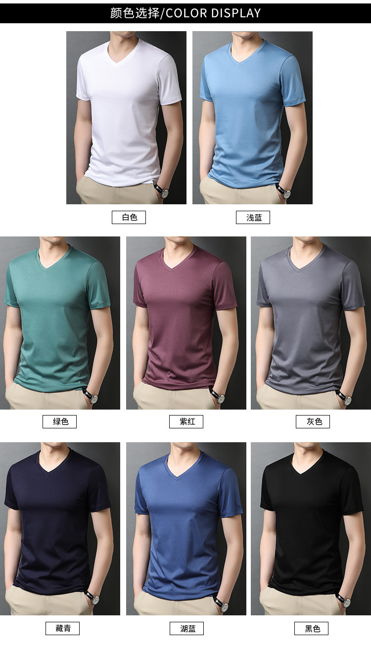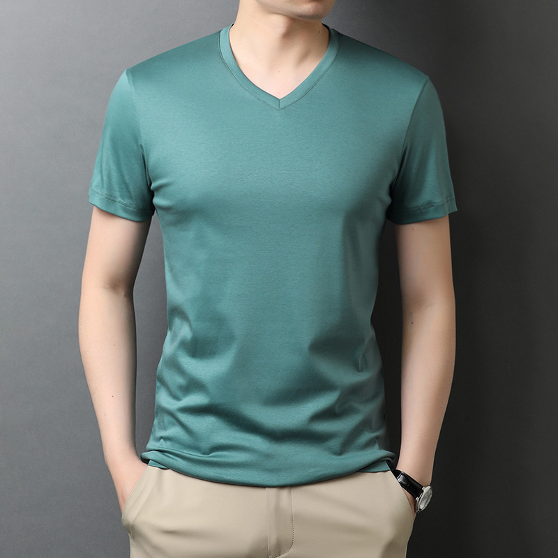 더블 머서라이즈면 남성용 티셔츠 여름 새로운 레저 V 넥 단색 액체 암모니아 짧은 소매 남성용 코튼 얇은 반소매 셔츠스토어 가기