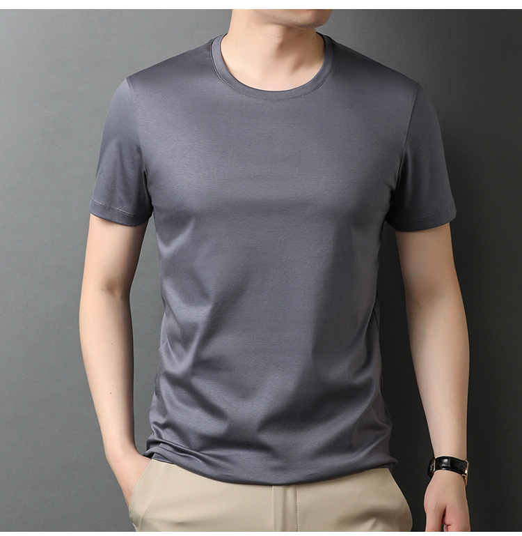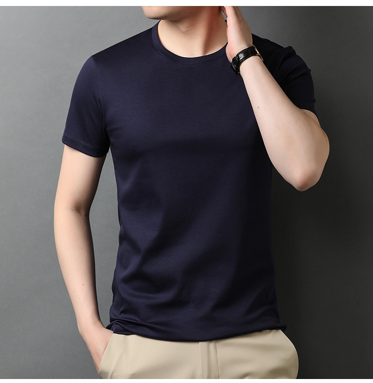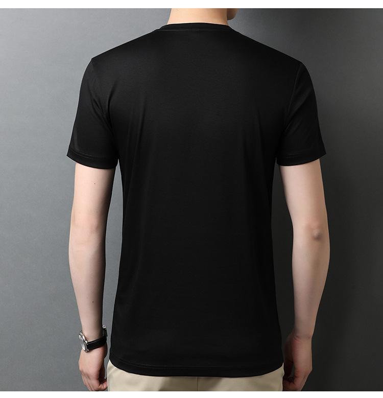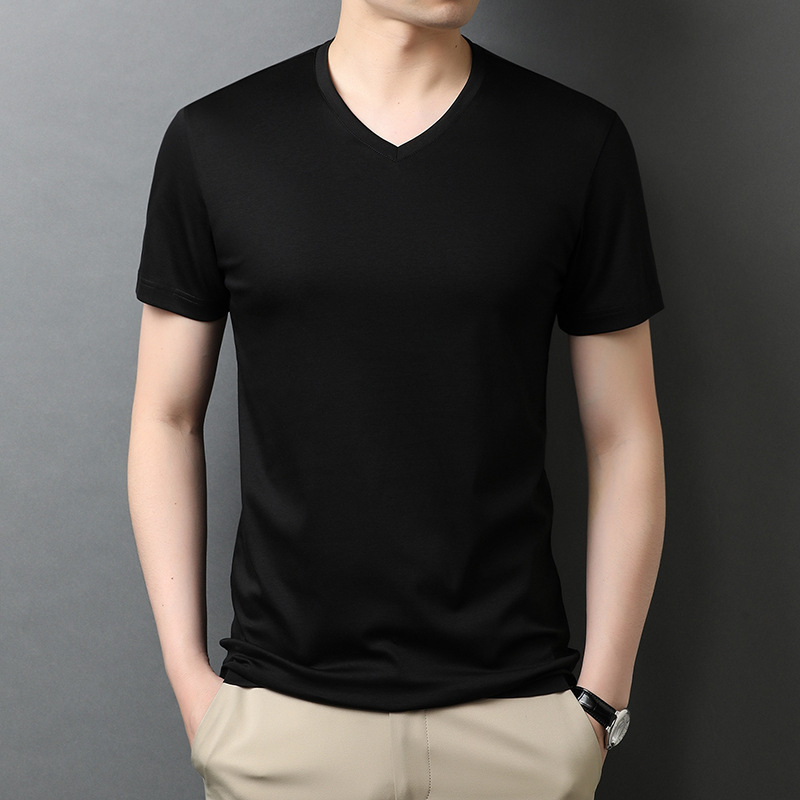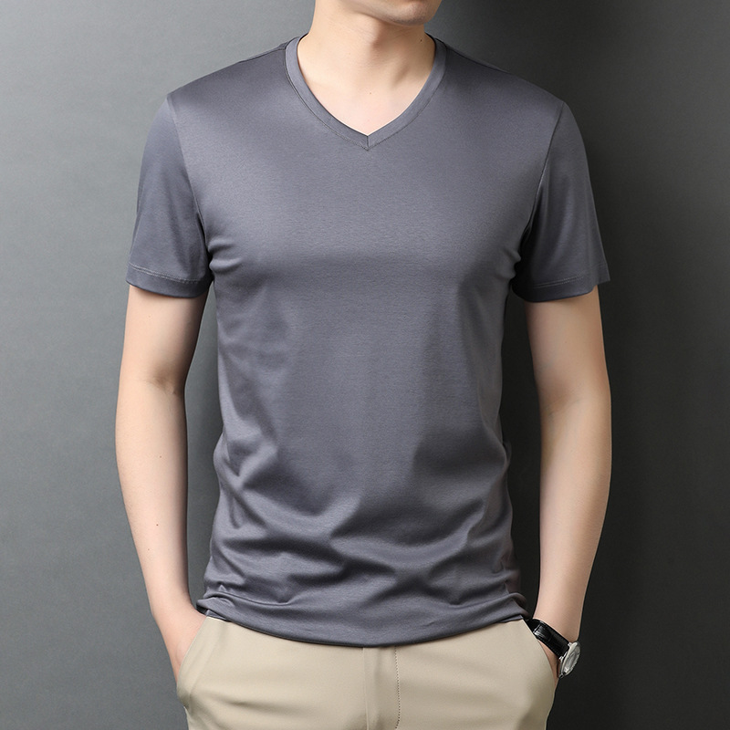 더블 머서라이즈면 남성용 티셔츠 여름 새로운 레저 V 넥 단색 액체 암모니아 짧은 소매 남성용 코튼 얇은 반소매 셔츠