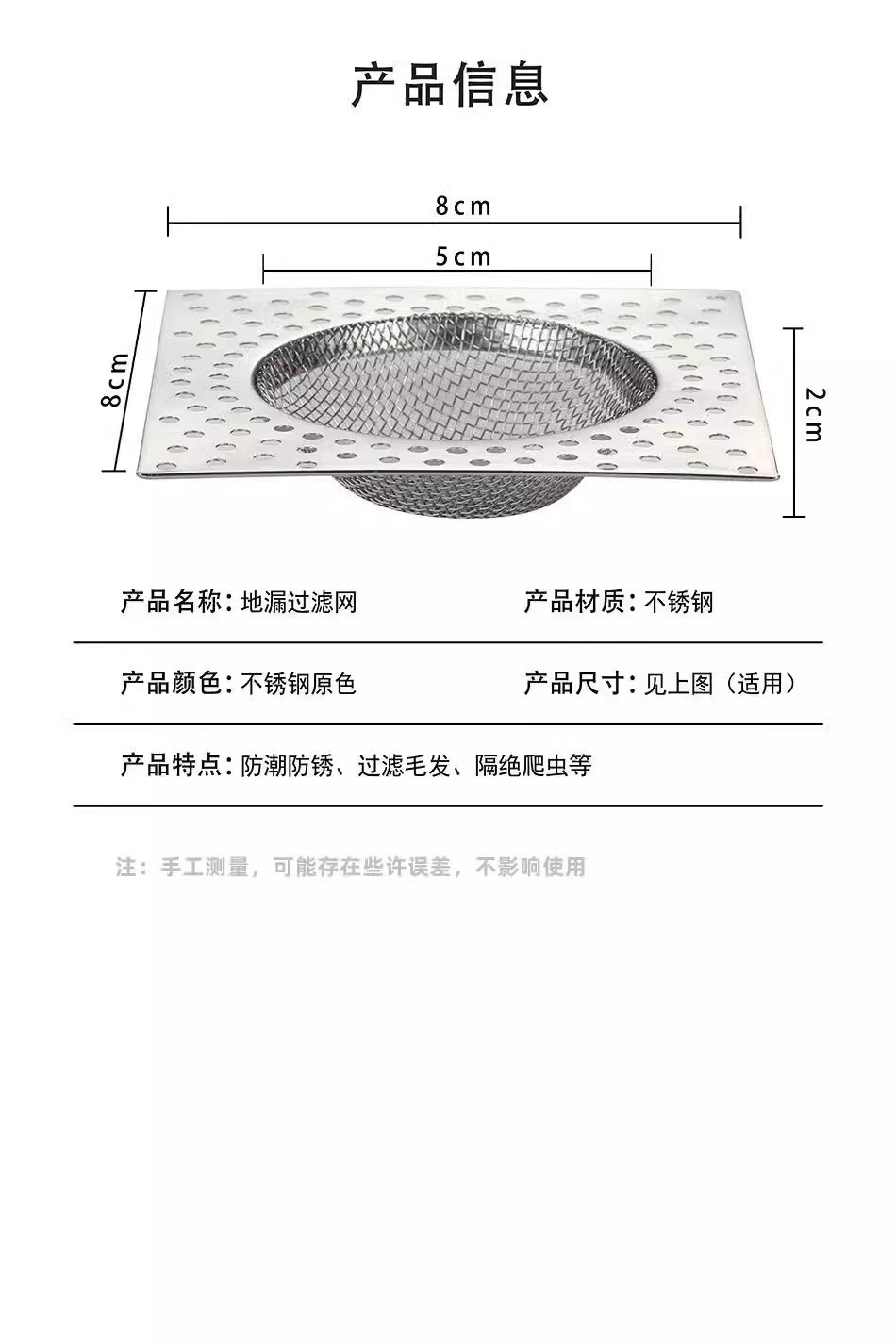 스테인레스 스틸 바닥 배수 필터 사각형 욕실 하수구 욕실 범용 막힘 방지 헤어 필터 커버