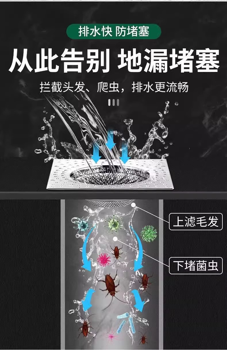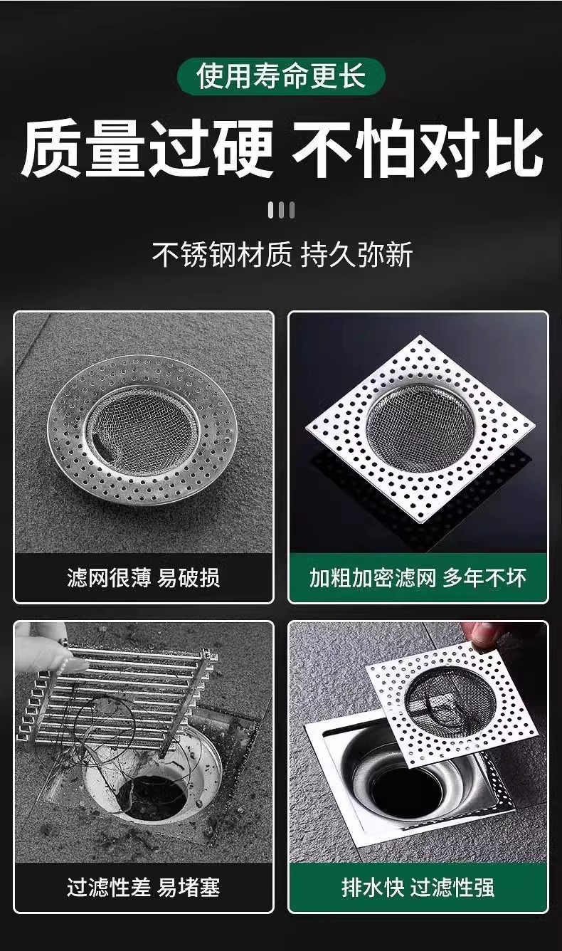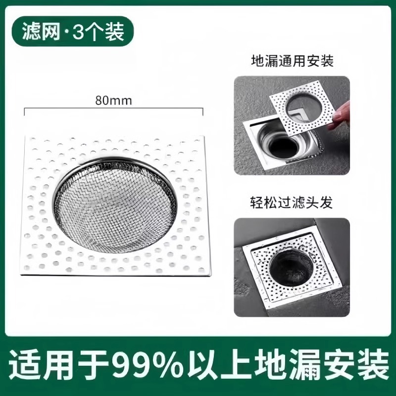 스테인레스 스틸 바닥 배수 필터 사각형 욕실 하수구 욕실 범용 막힘 방지 헤어 필터 커버스토어 가기