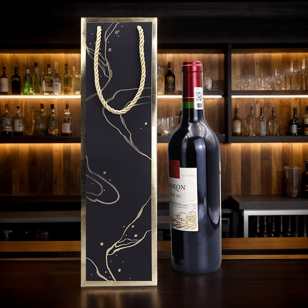 크리스마스 선물 가방, 브론징 골판지 와인 가방, 와인 골드 테두리 선물 가방, 고급 와인 포장 종이 가방, 핸드백