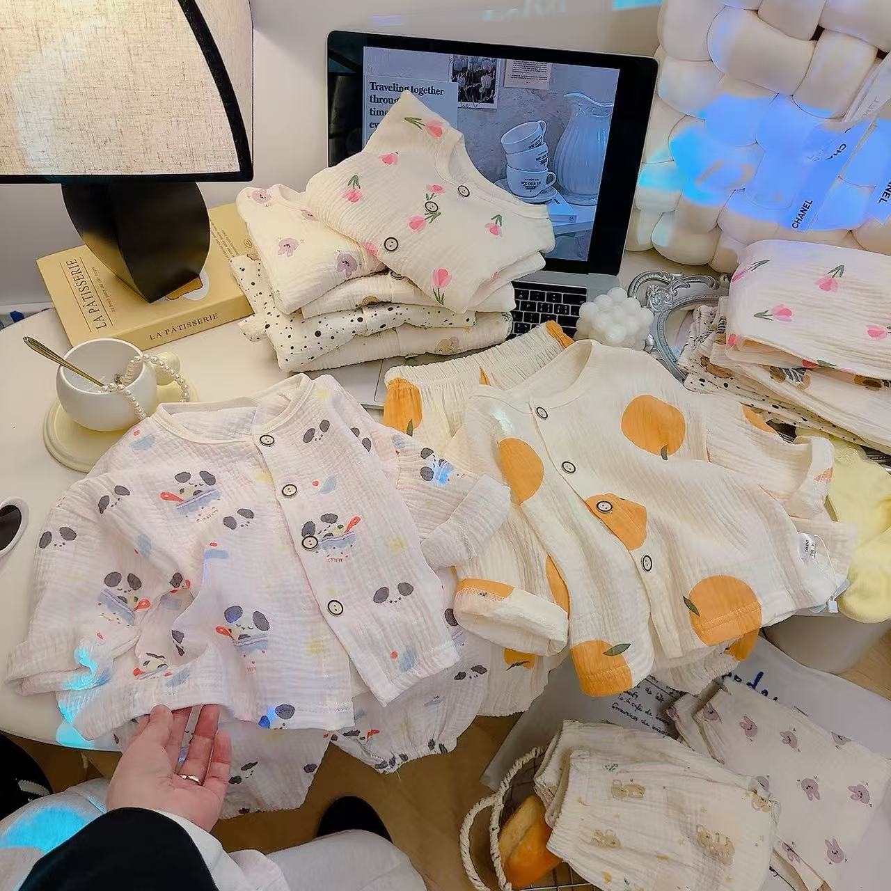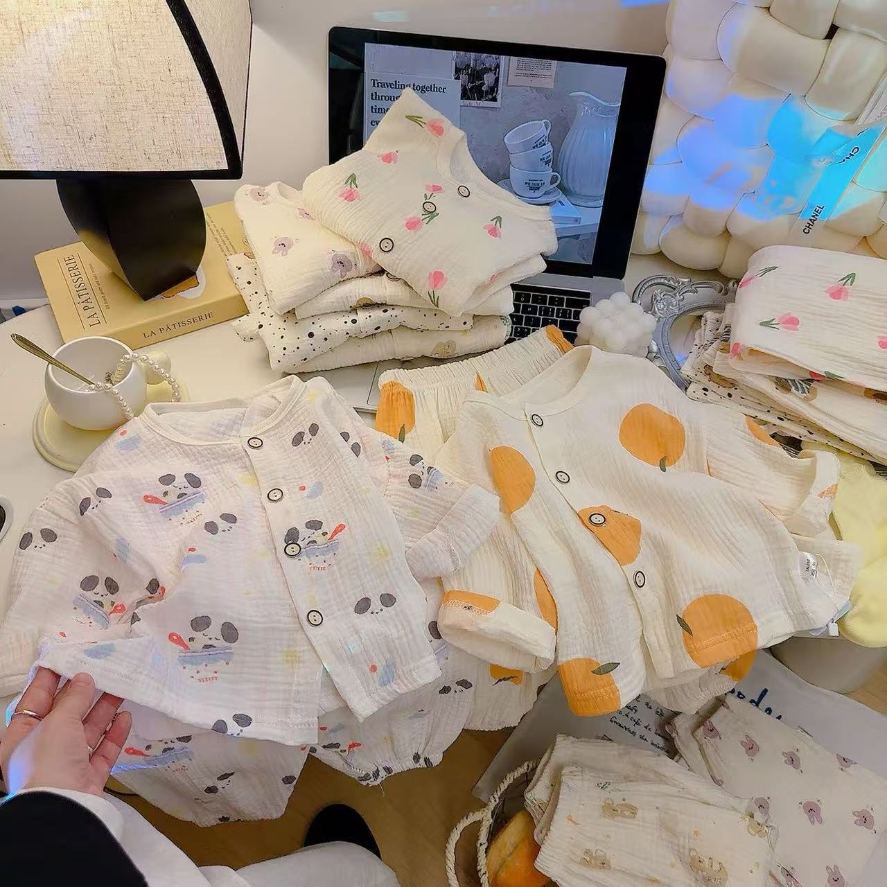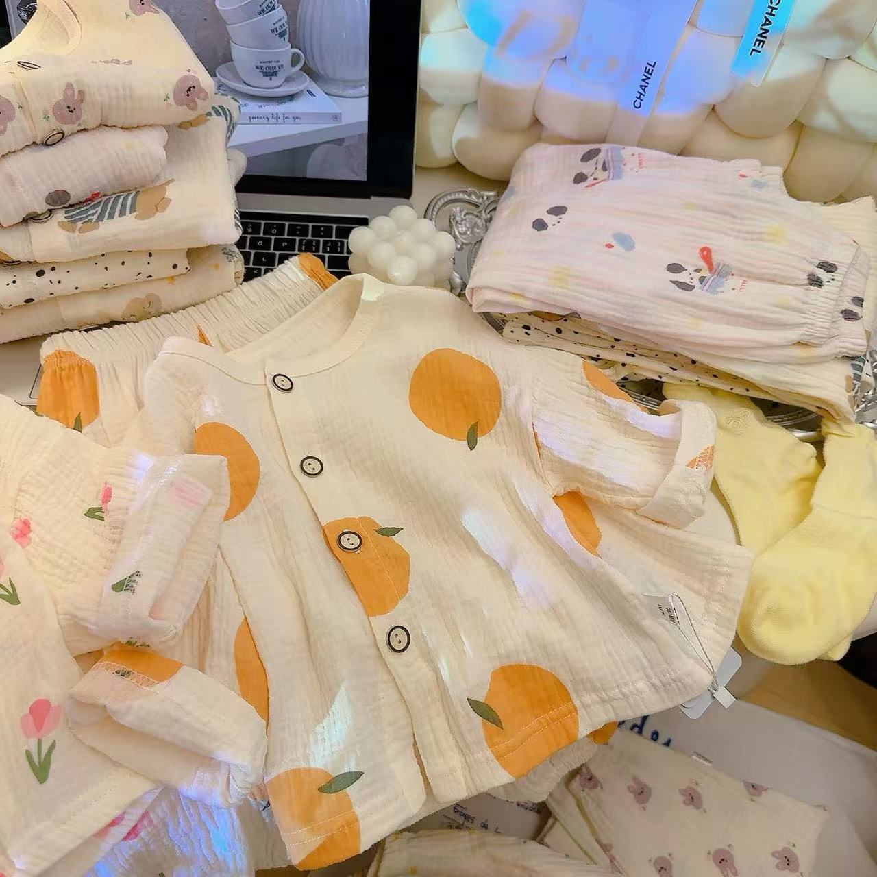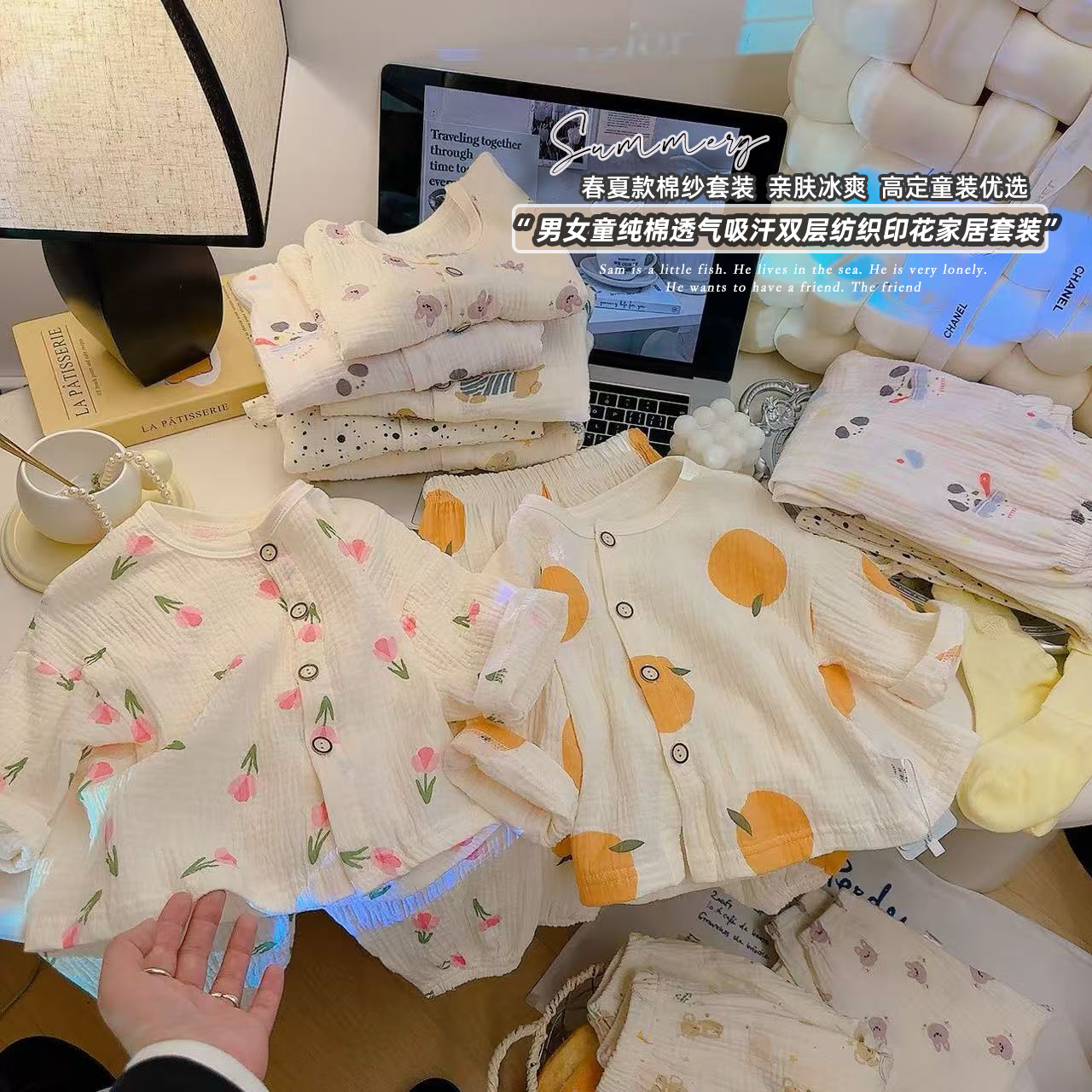 어린이 면사 파자마 소년과 소년의 순면 홈 의류 세트 만화 아기의 더블 레이어 원사 통기성 에어컨 옷스토어 가기