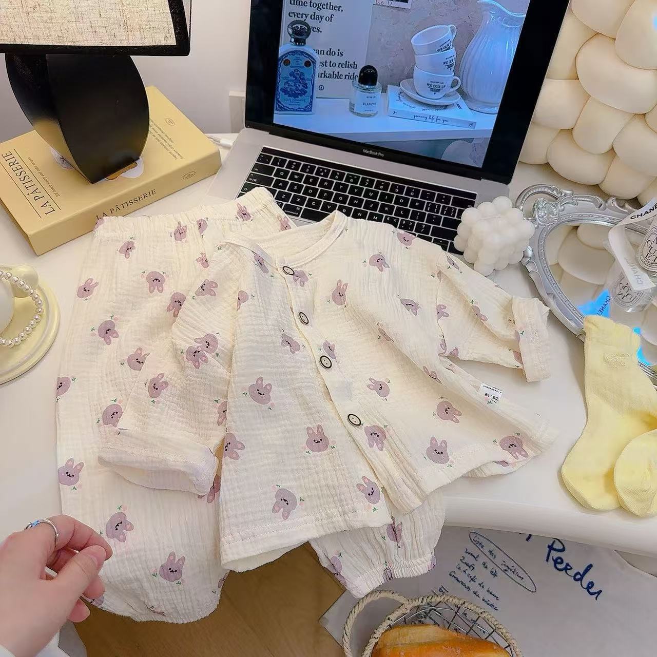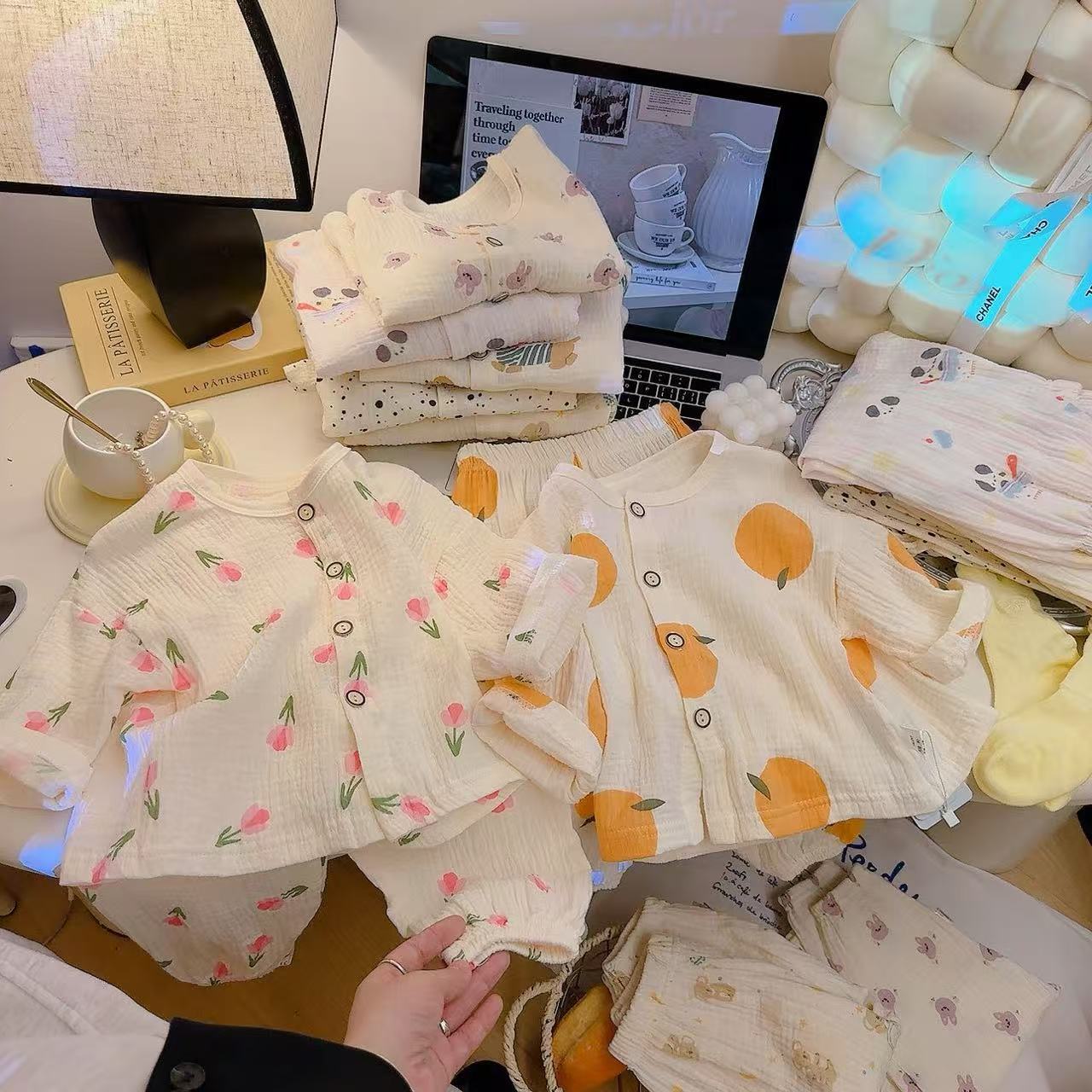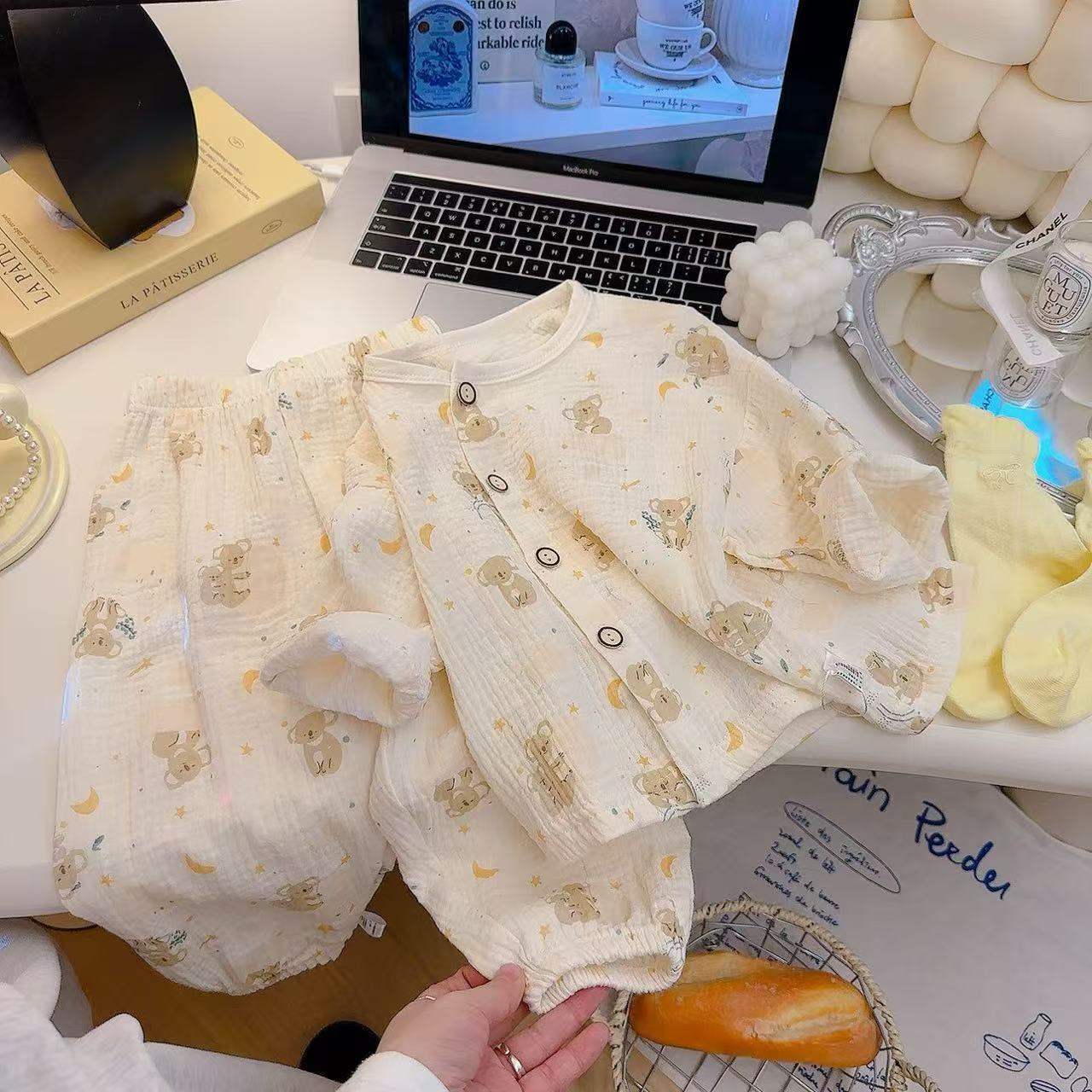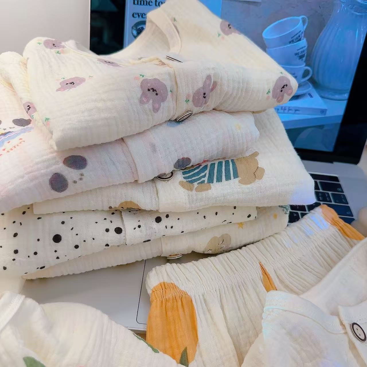 어린이 면사 파자마 소년과 소년의 순면 홈 의류 세트 만화 아기의 더블 레이어 원사 통기성 에어컨 옷스토어 가기