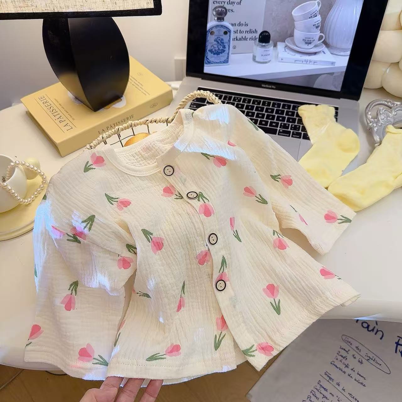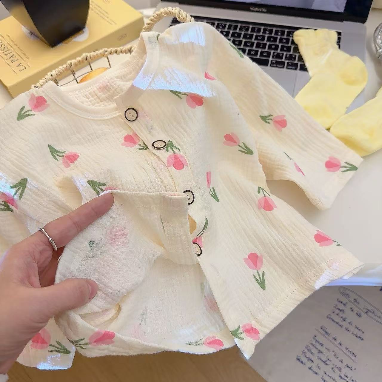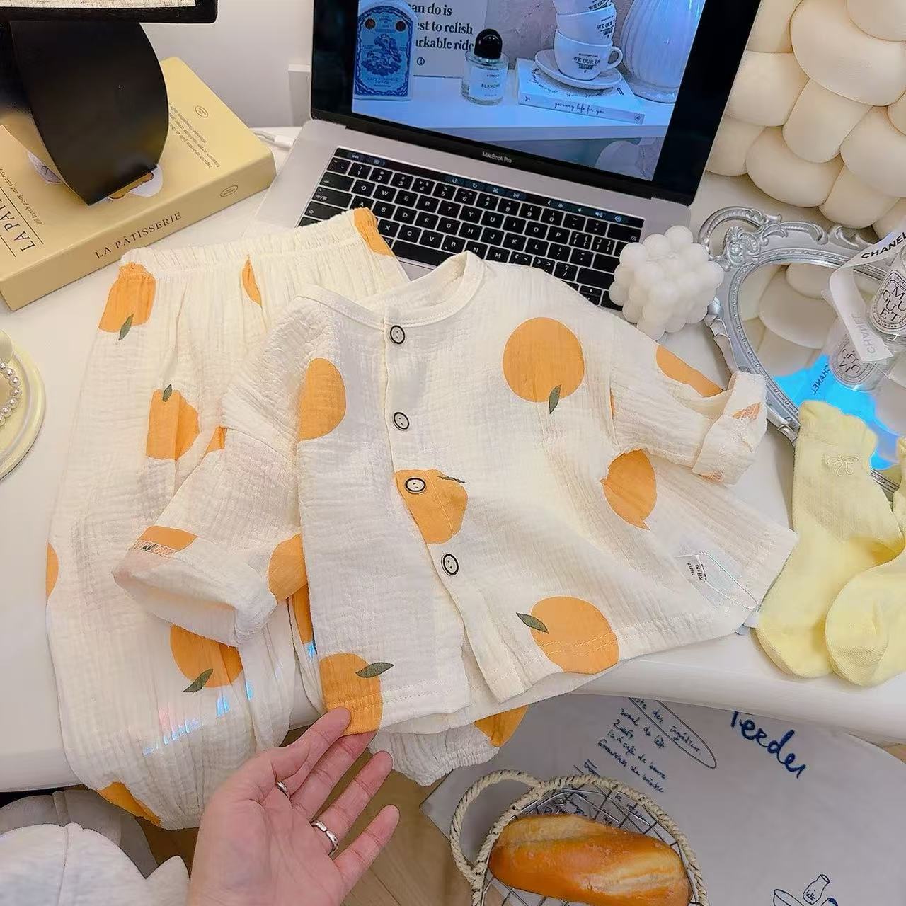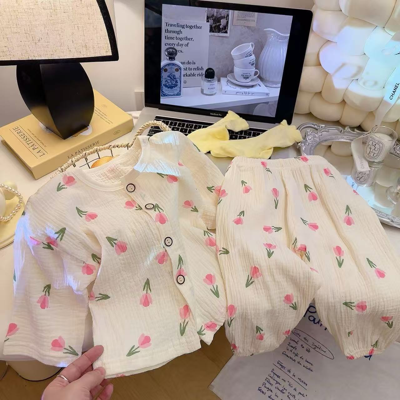 어린이 면사 파자마 소년과 소년의 순면 홈 의류 세트 만화 아기의 더블 레이어 원사 통기성 에어컨 옷스토어 가기