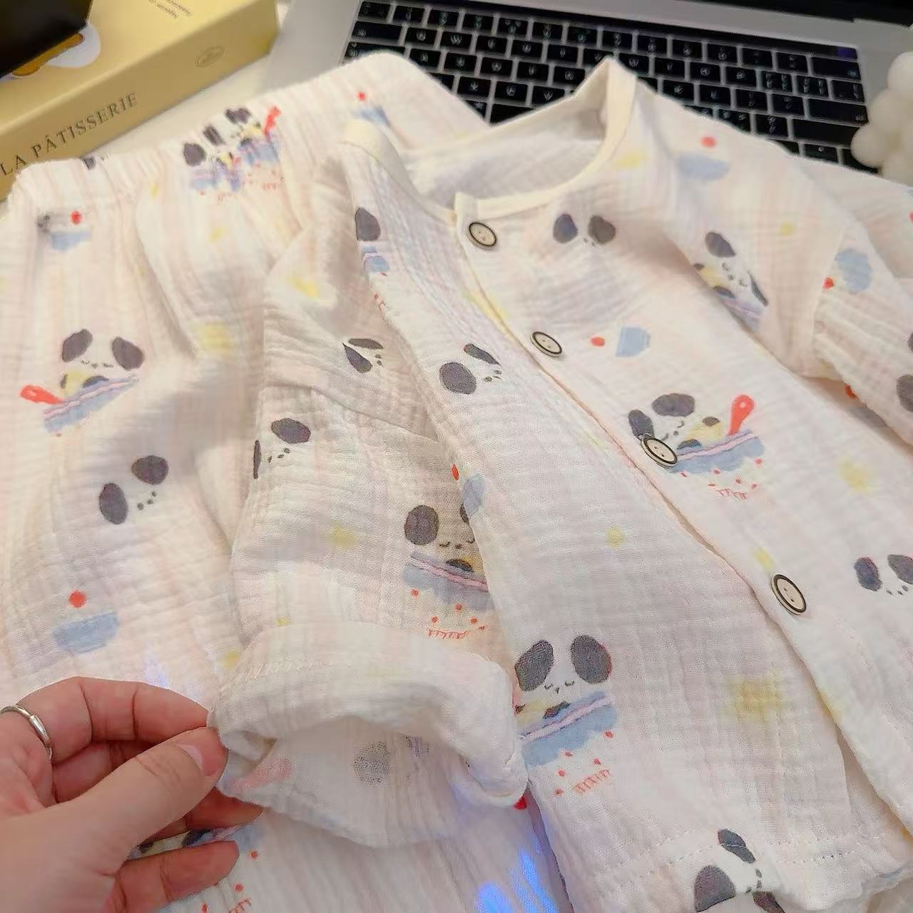 어린이 면사 파자마 소년과 소년의 순면 홈 의류 세트 만화 아기의 더블 레이어 원사 통기성 에어컨 옷