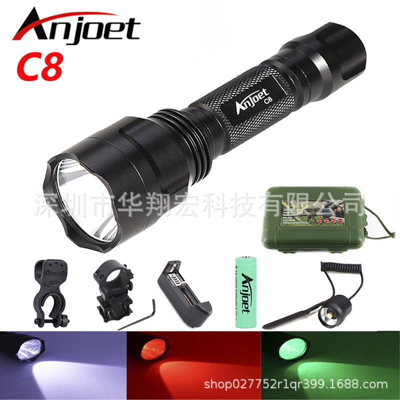 C8 빨강/녹색/흰색 T6 알루미늄 합금 손전등 야외 조명 장거리 자전거 조명스토어 가기