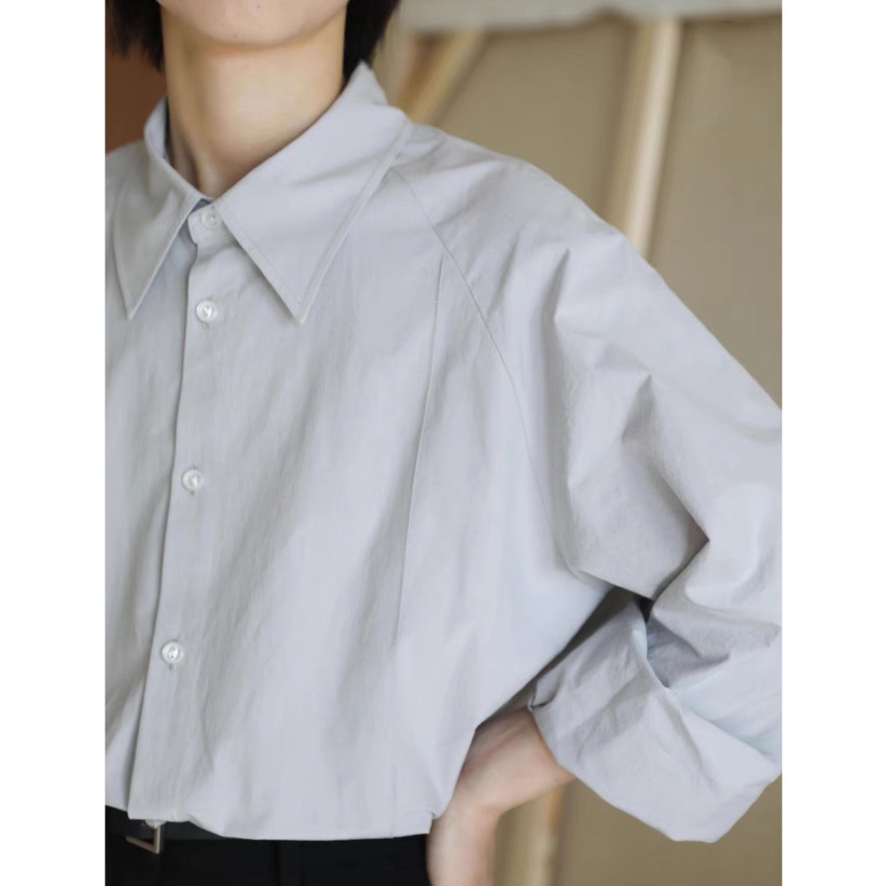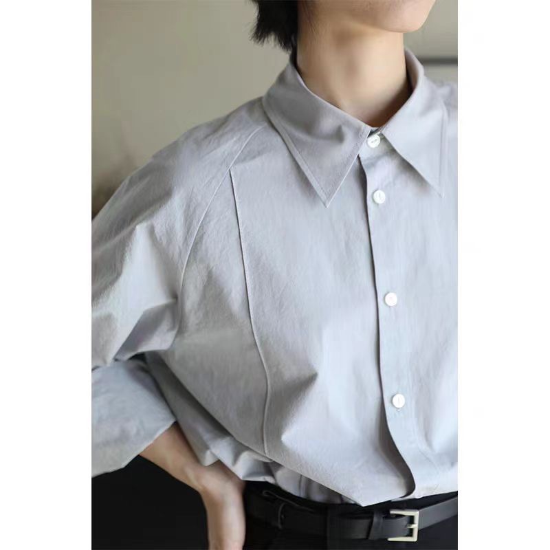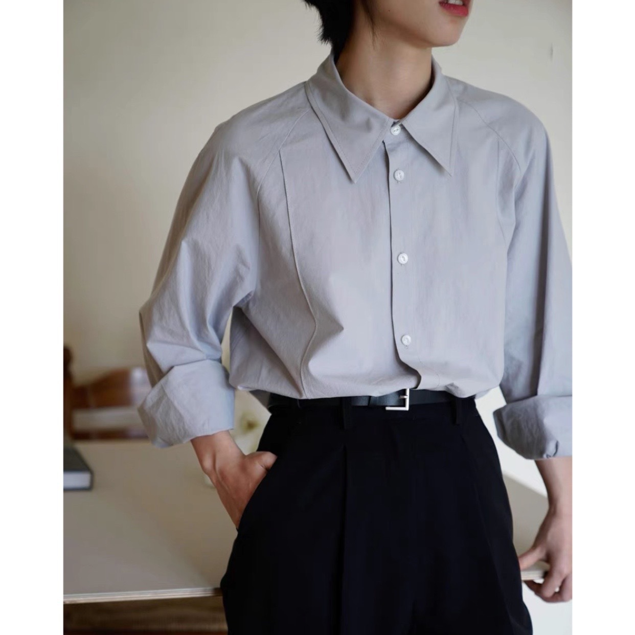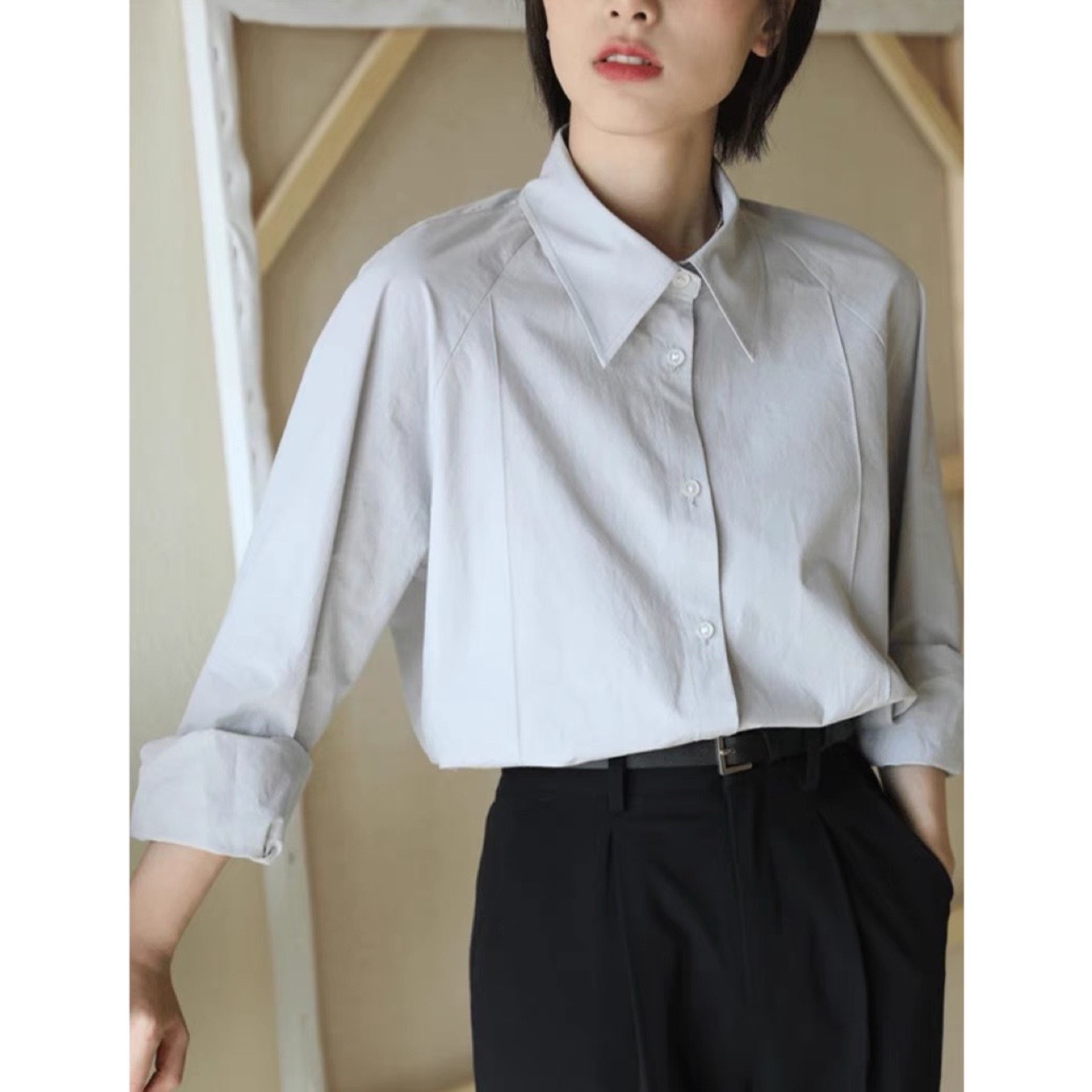 프랑스 고감 회색 긴 소매 셔츠 여성의 2025 봄과 가을 새로운 복고풍 통근 전문 셔츠 인터뷰 탑