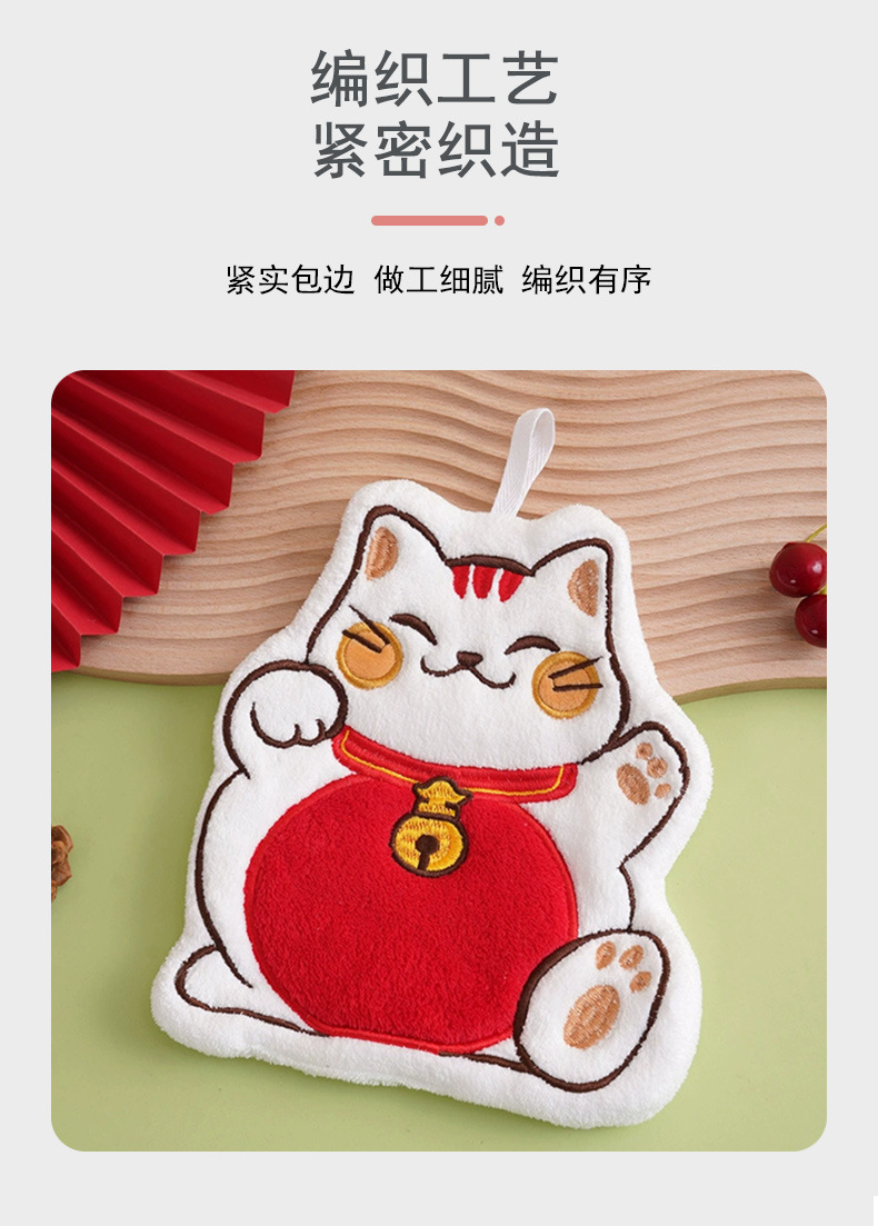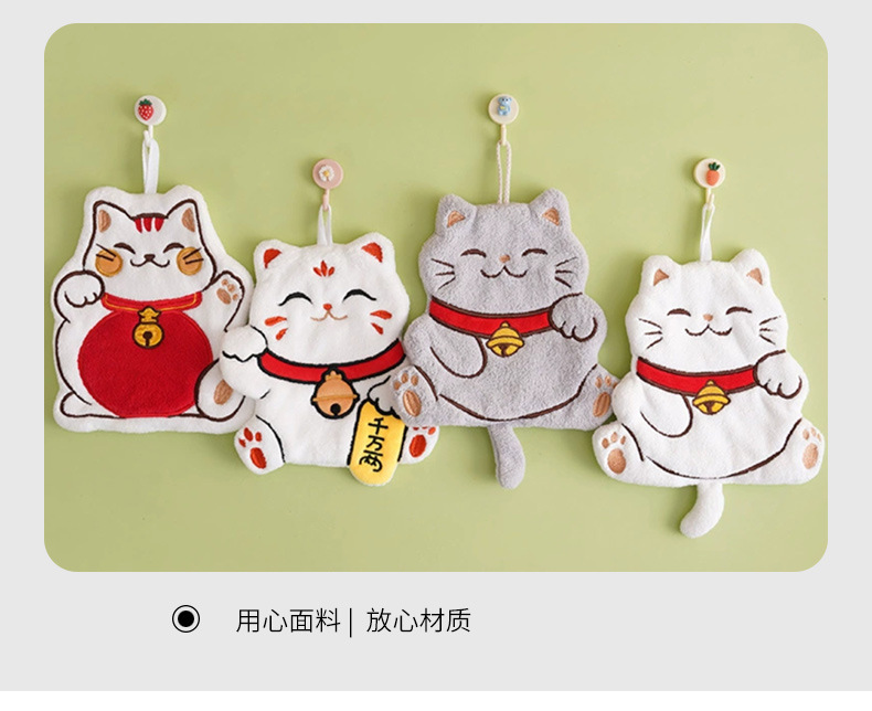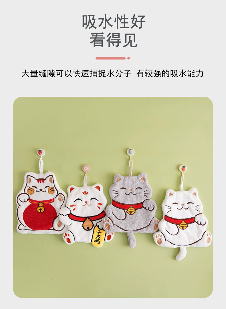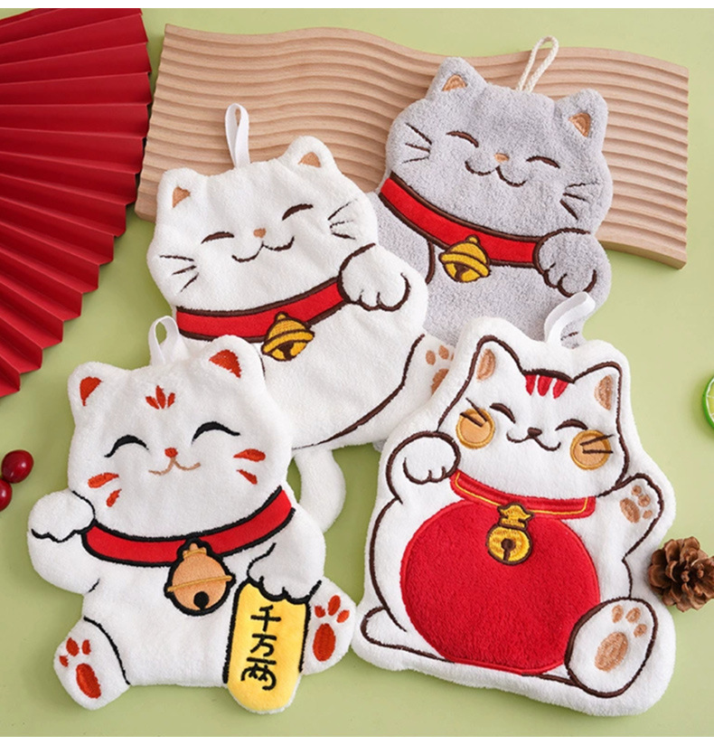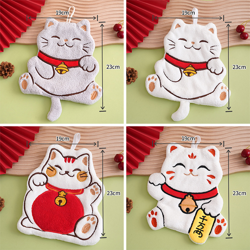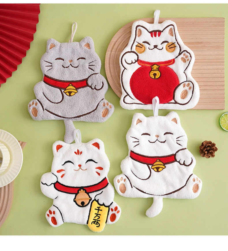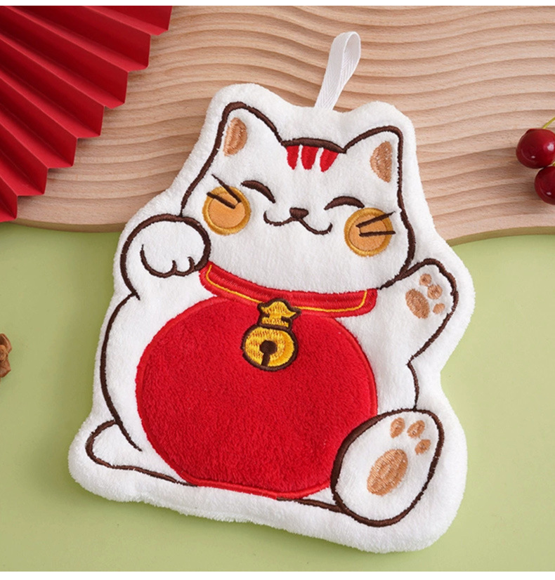 행운의 고양이 벽걸이 손수건 귀여운 어린이 화장실 주방 흡수성 작은 수건 만화 걸레 대량 배송 가능스토어 가기