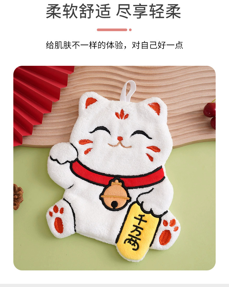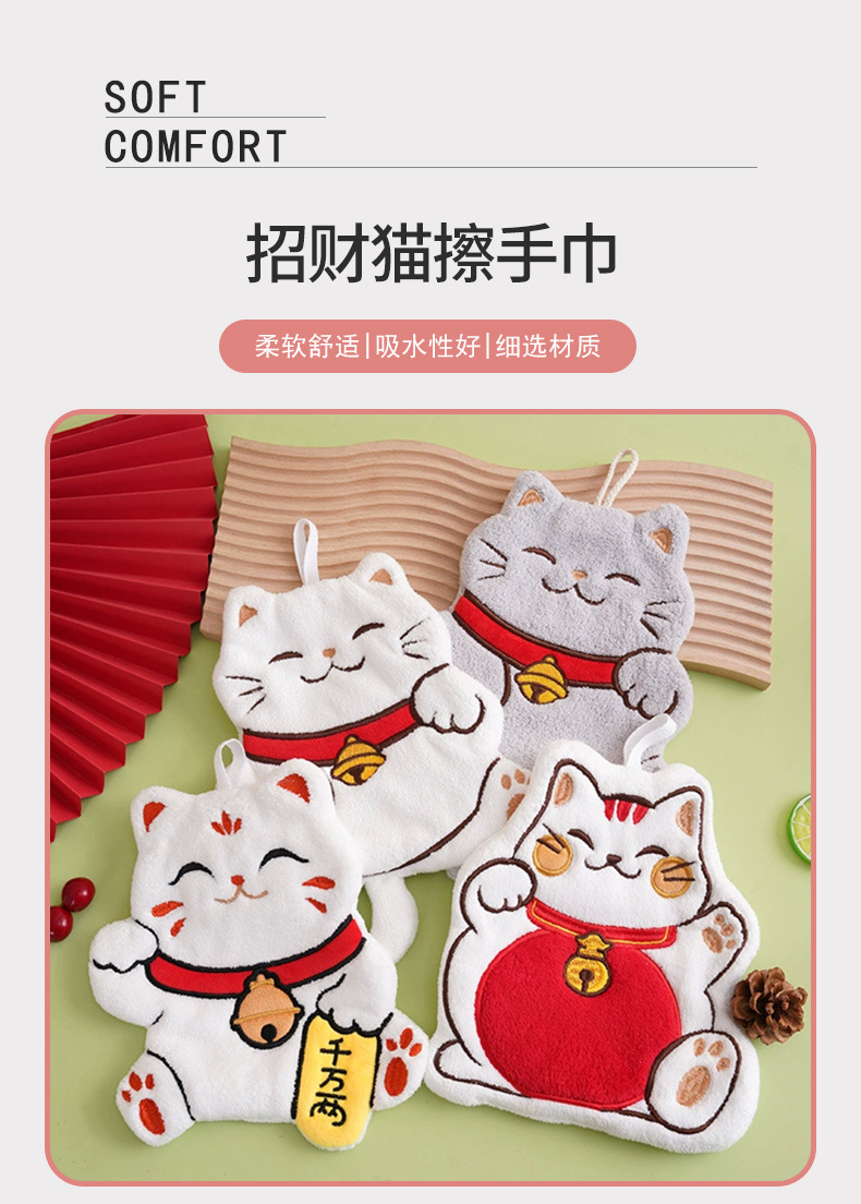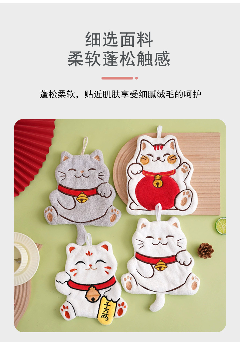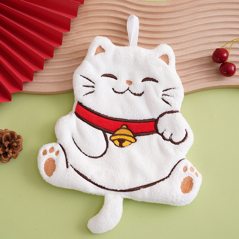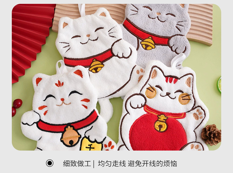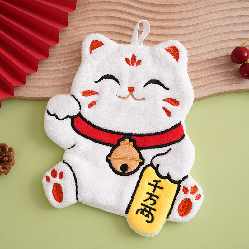 행운의 고양이 벽걸이 손수건 귀여운 어린이 화장실 주방 흡수성 작은 수건 만화 걸레 대량 배송 가능스토어 가기