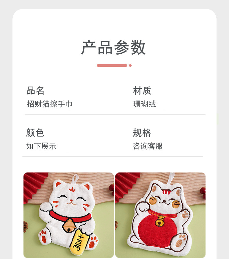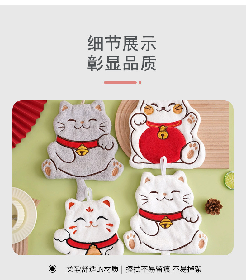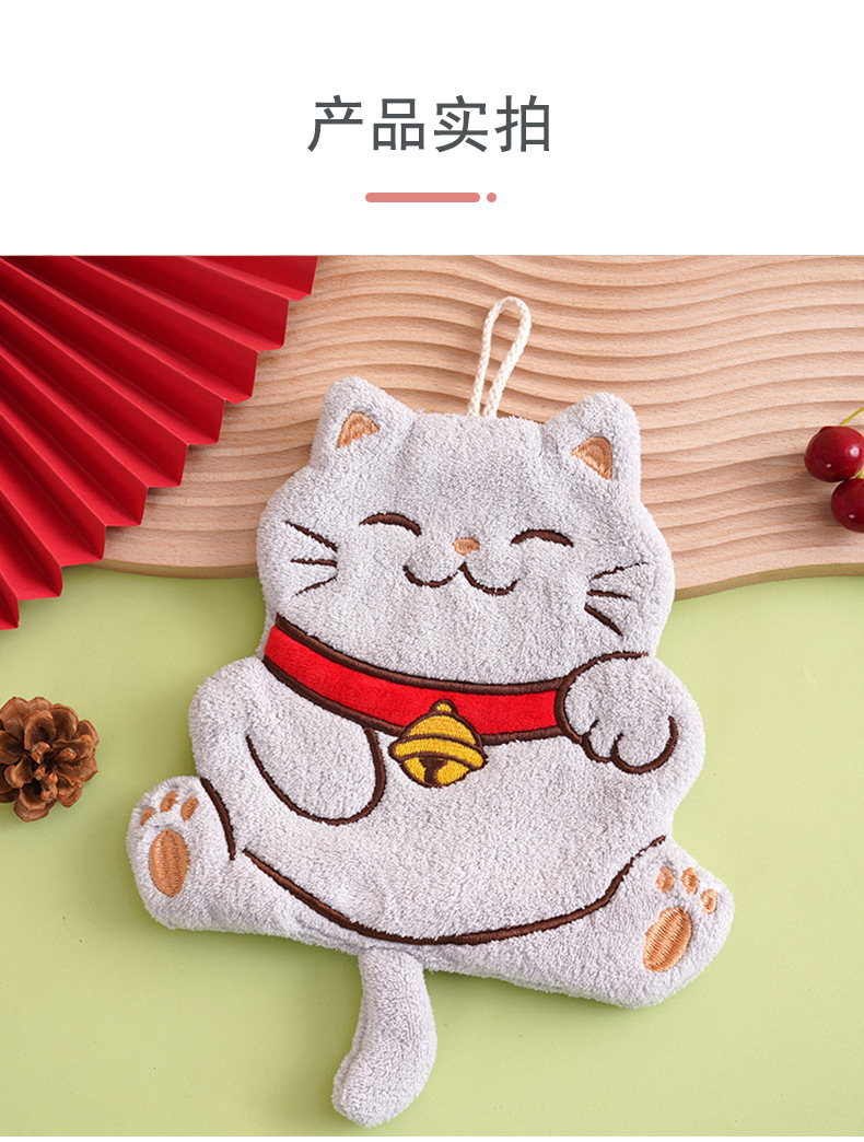 행운의 고양이 벽걸이 손수건 귀여운 어린이 화장실 주방 흡수성 작은 수건 만화 걸레 대량 배송 가능