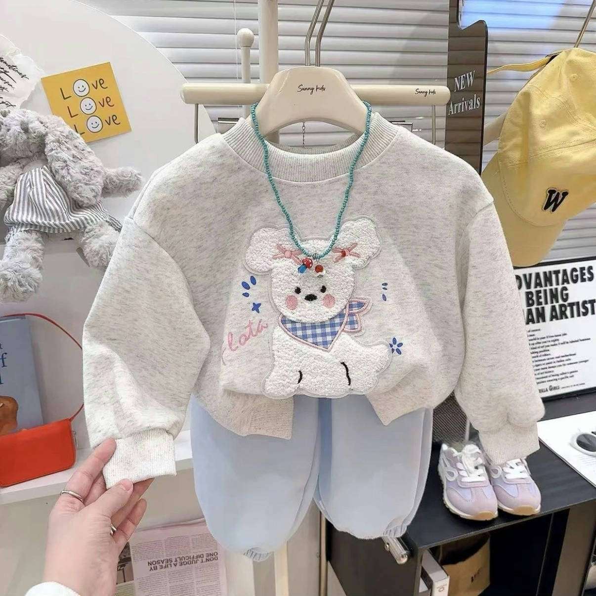 소녀 세트 2025 새로운 어린이 봄과 가을 옷 땀 바지 투피스 아기의 봄 옷 유행
