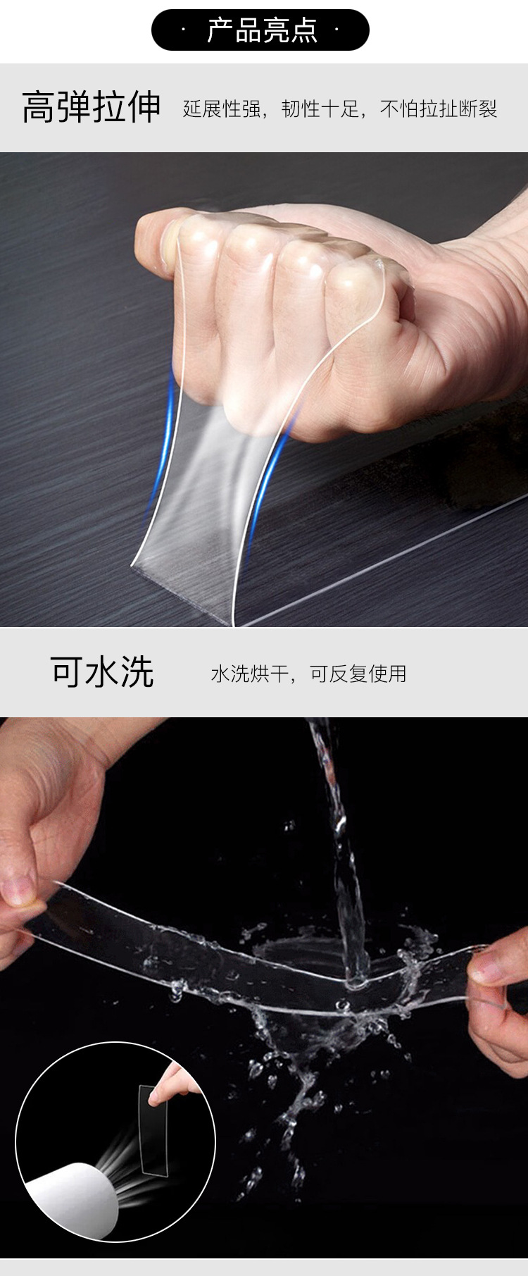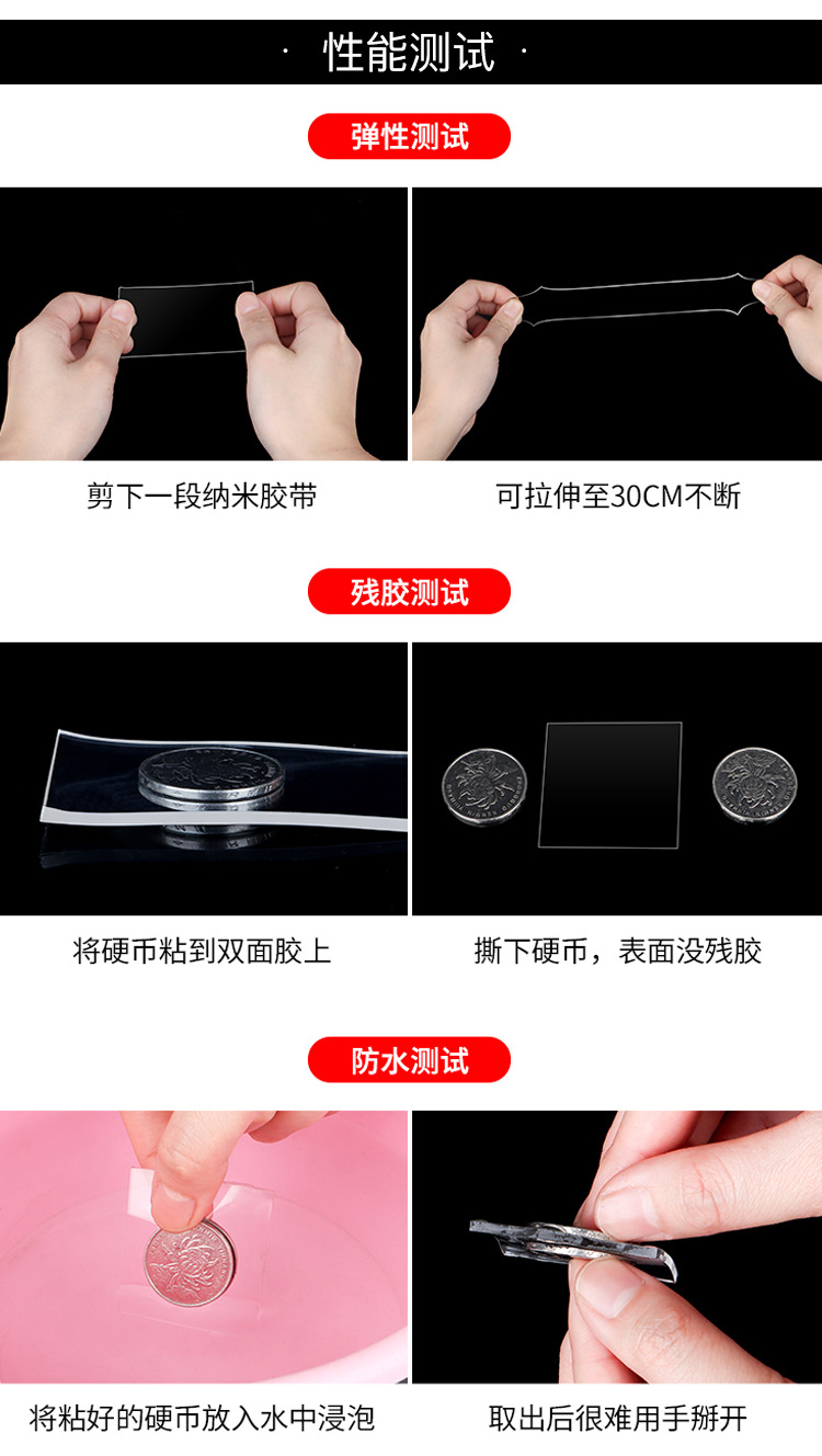Jihui 고점도 세척 가능한 나노 접착제 비 추적 매직 테이프 아크릴 접착제 투명 접착제 나노 양면 접착제 도매스토어 가기