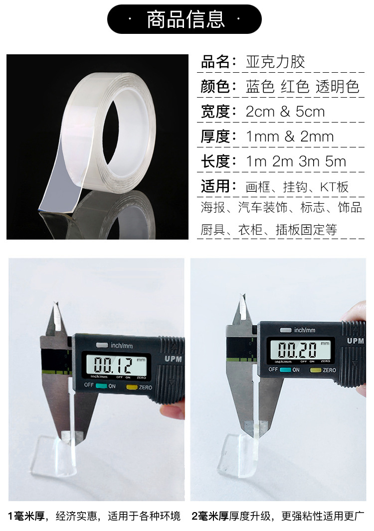 Jihui 고점도 세척 가능한 나노 접착제 비 추적 매직 테이프 아크릴 접착제 투명 접착제 나노 양면 접착제 도매