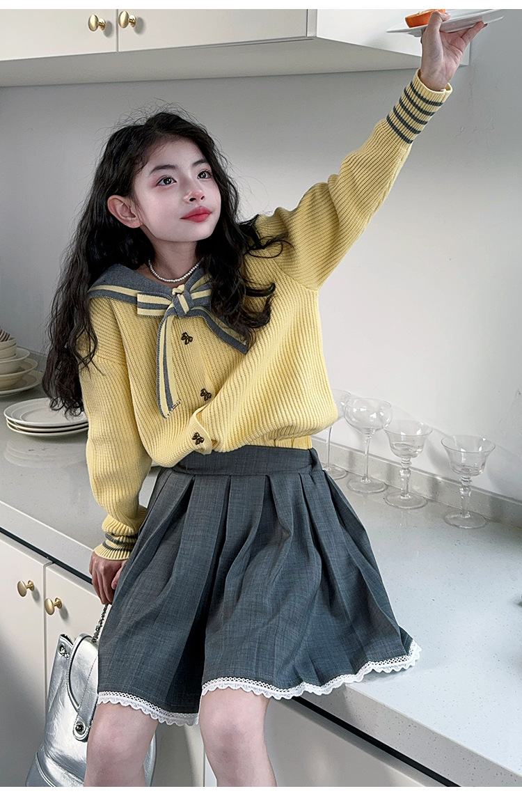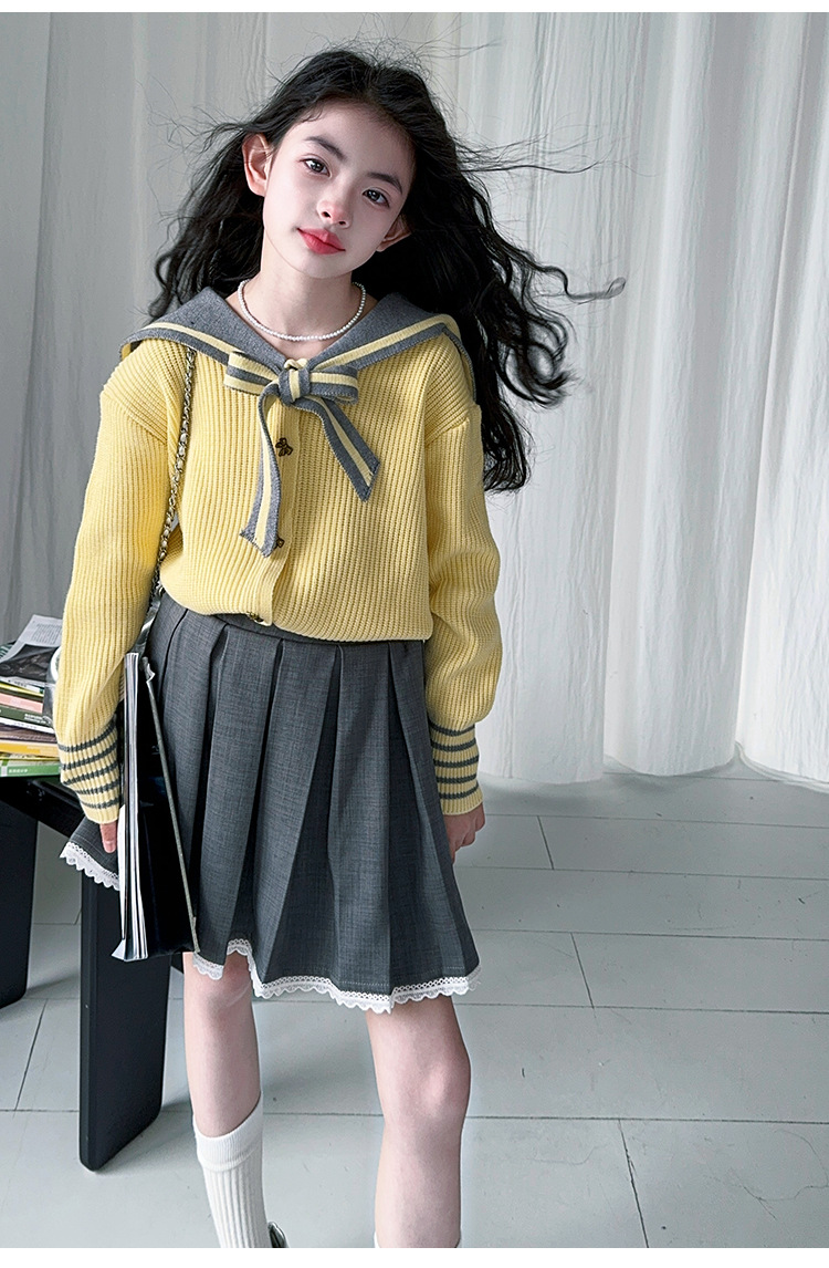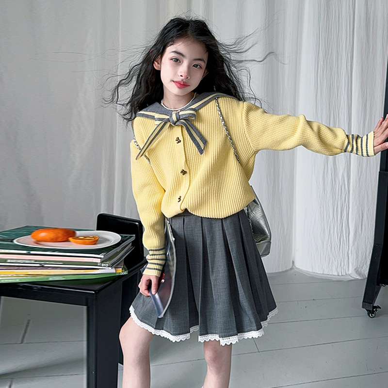 여아 JK 교복 세트 2025 가을 아동복 네이비 칼라 스웨터 가디건 댄스복 플리츠 스커트 투피스 세트