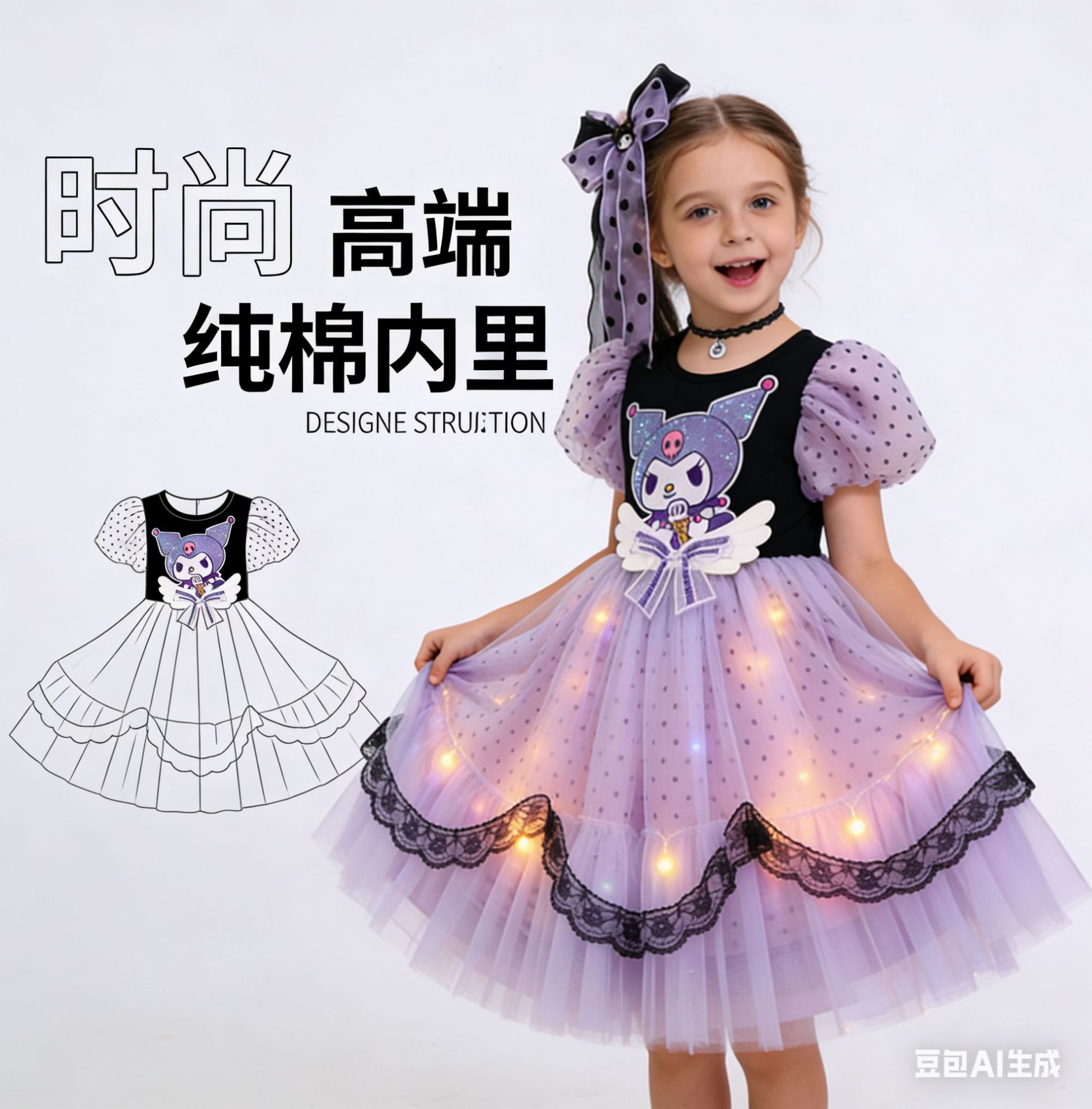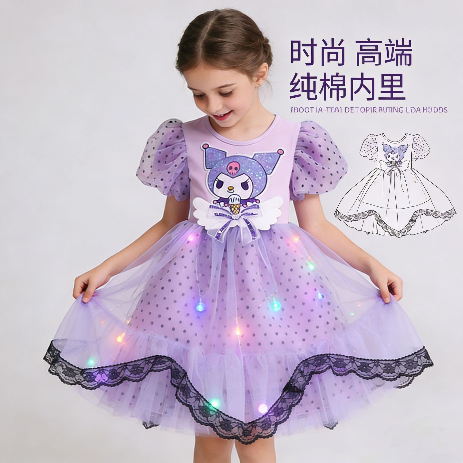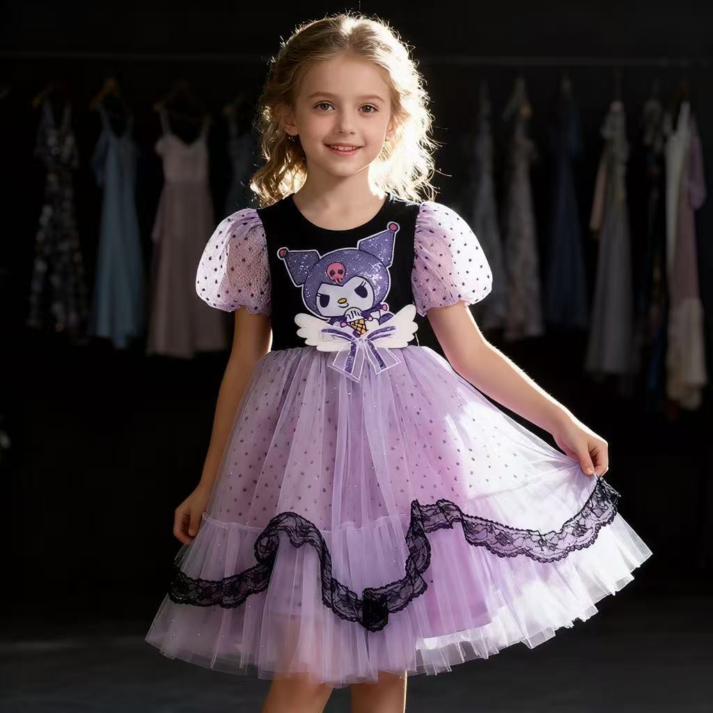 여자 쿠로미 드레스 여름 드레스 어린이 로리타 공주 드레스 아기 소녀 생일 드레스 소녀 투투 스커트