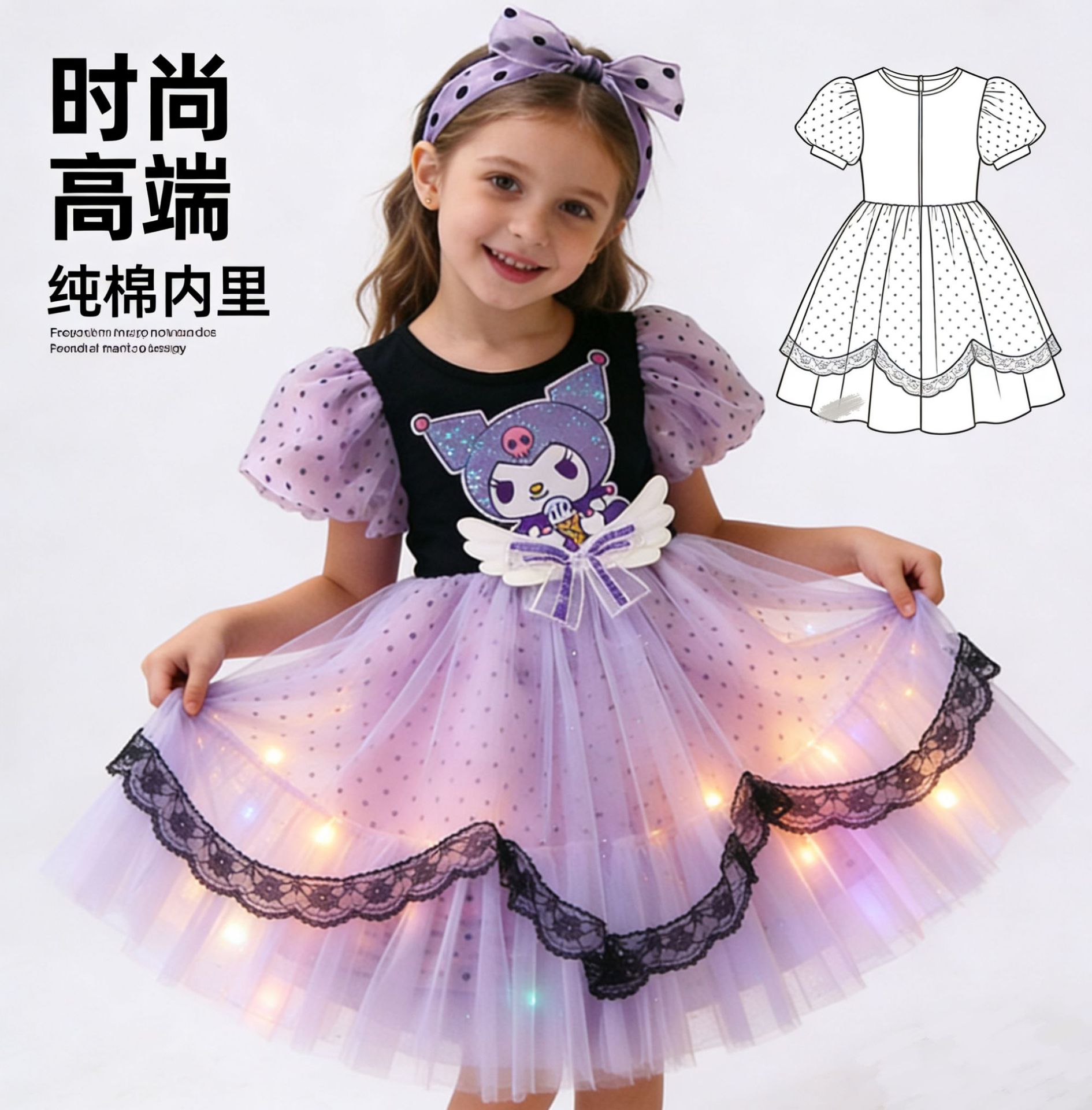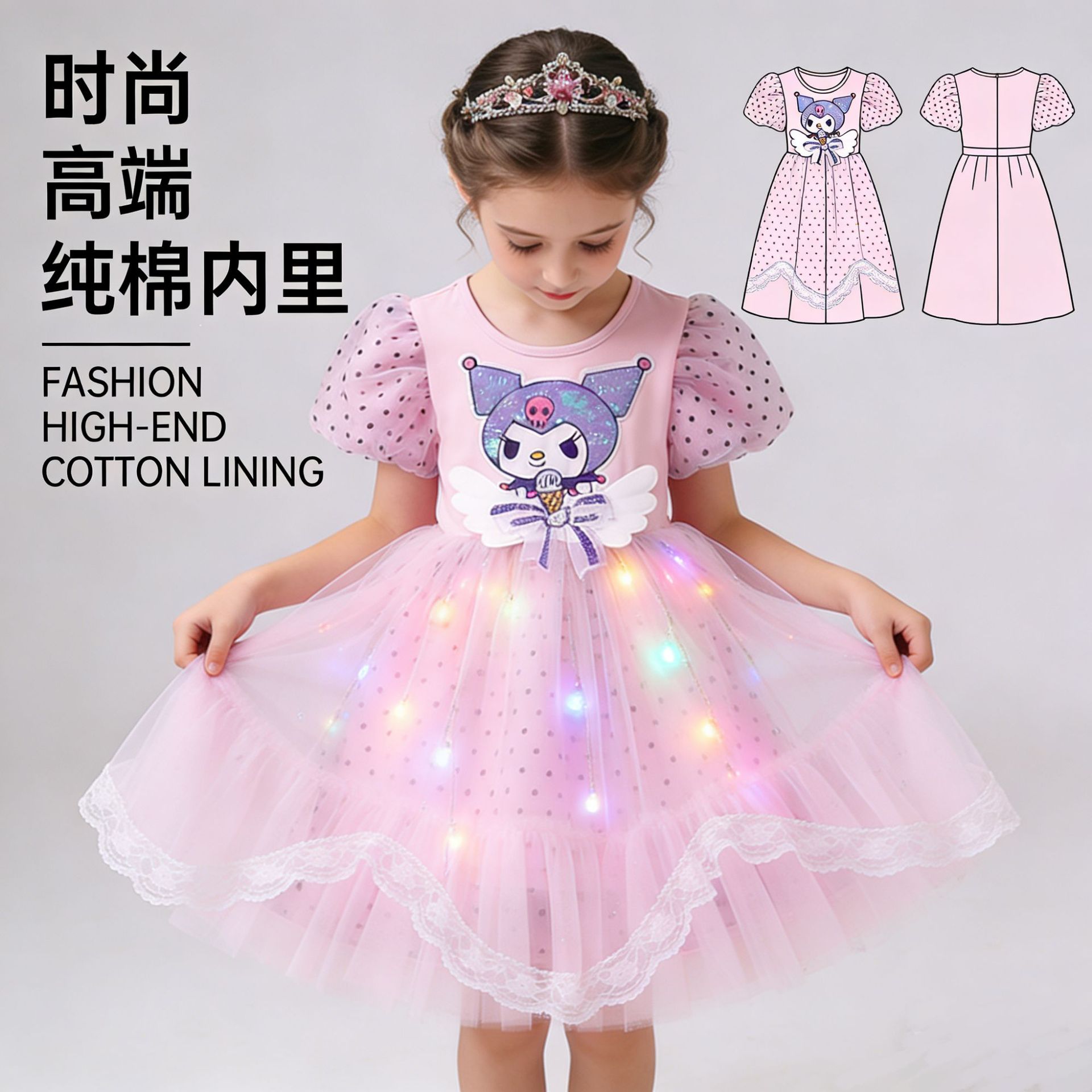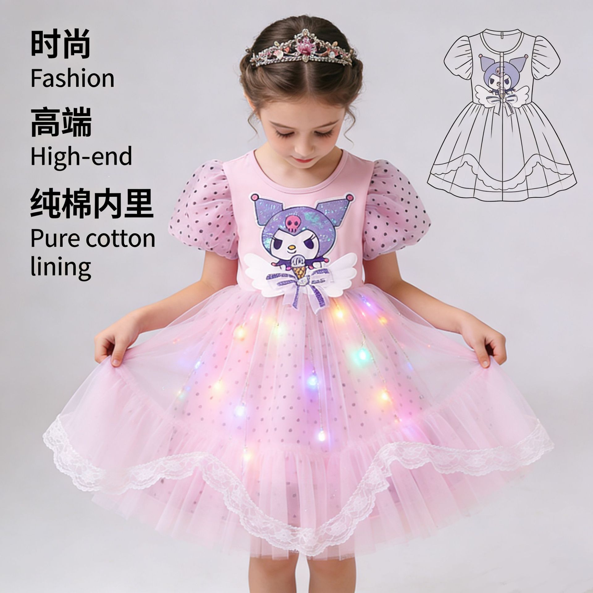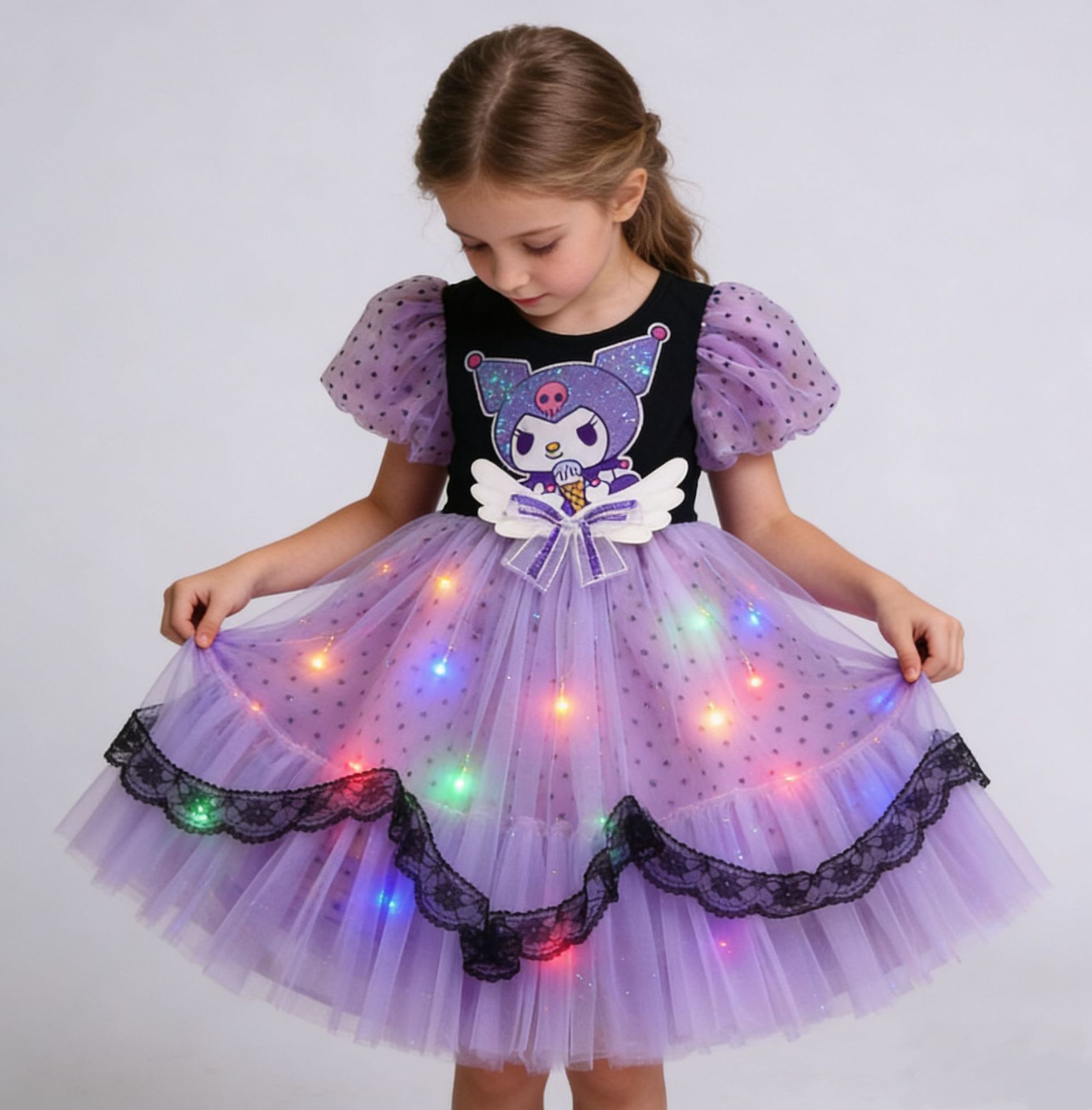 • 반팔 - 블랙/공주 드레스 + 머리 장식 + 컬러 조명