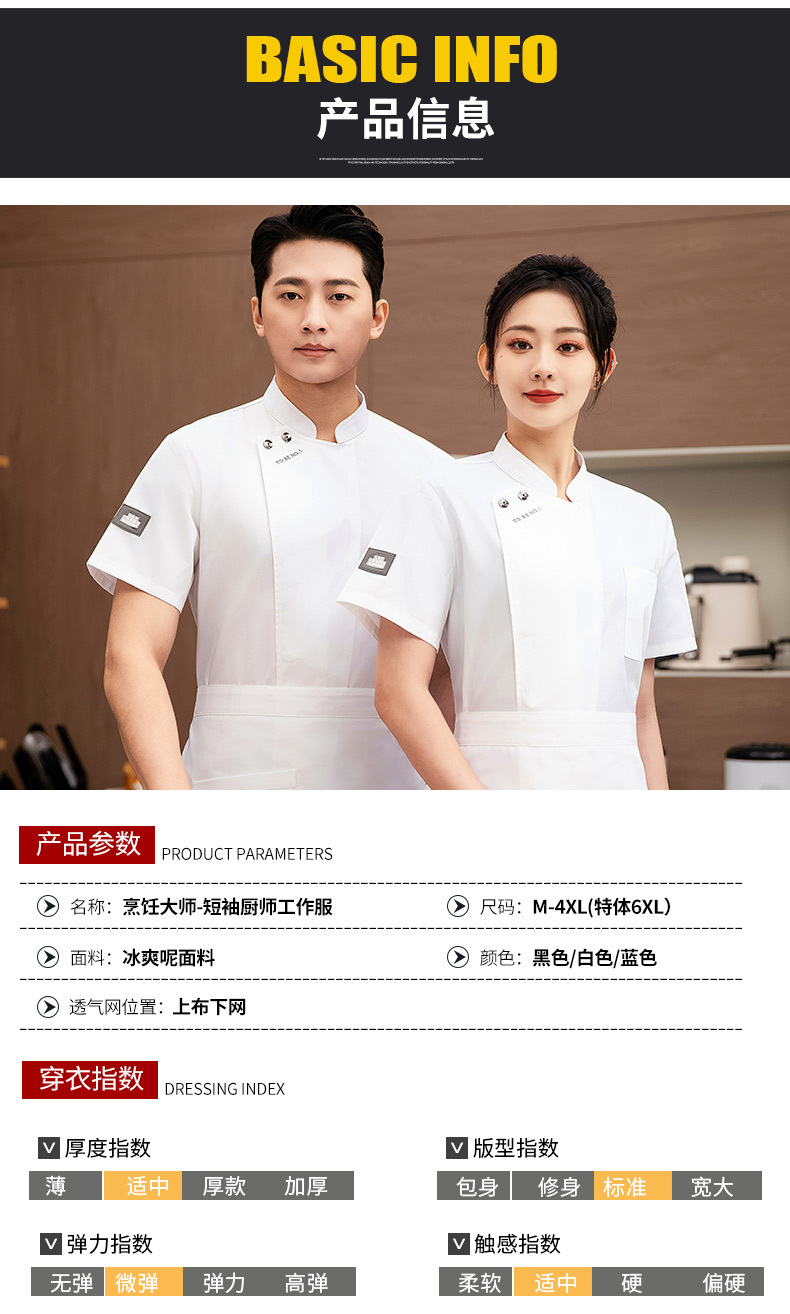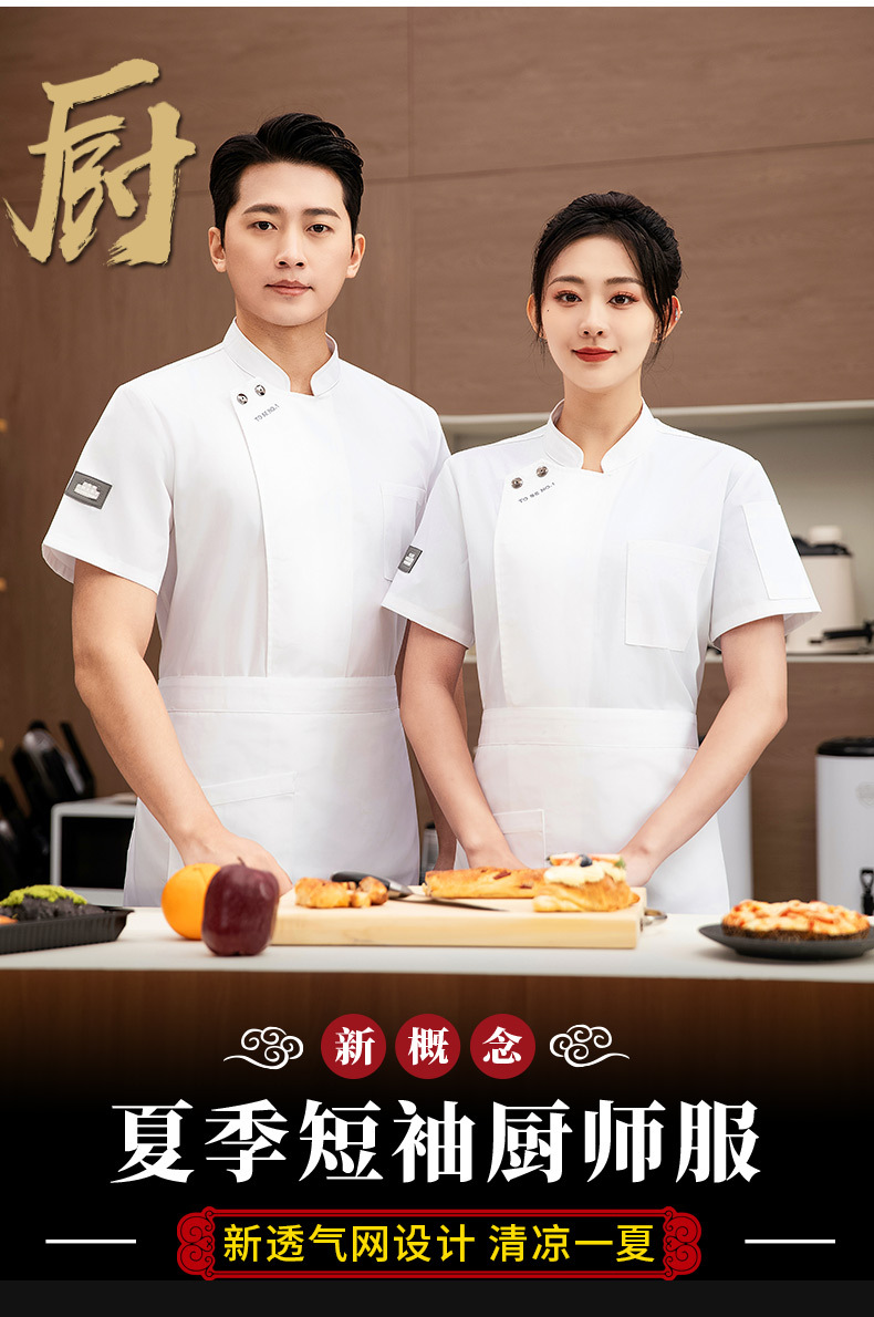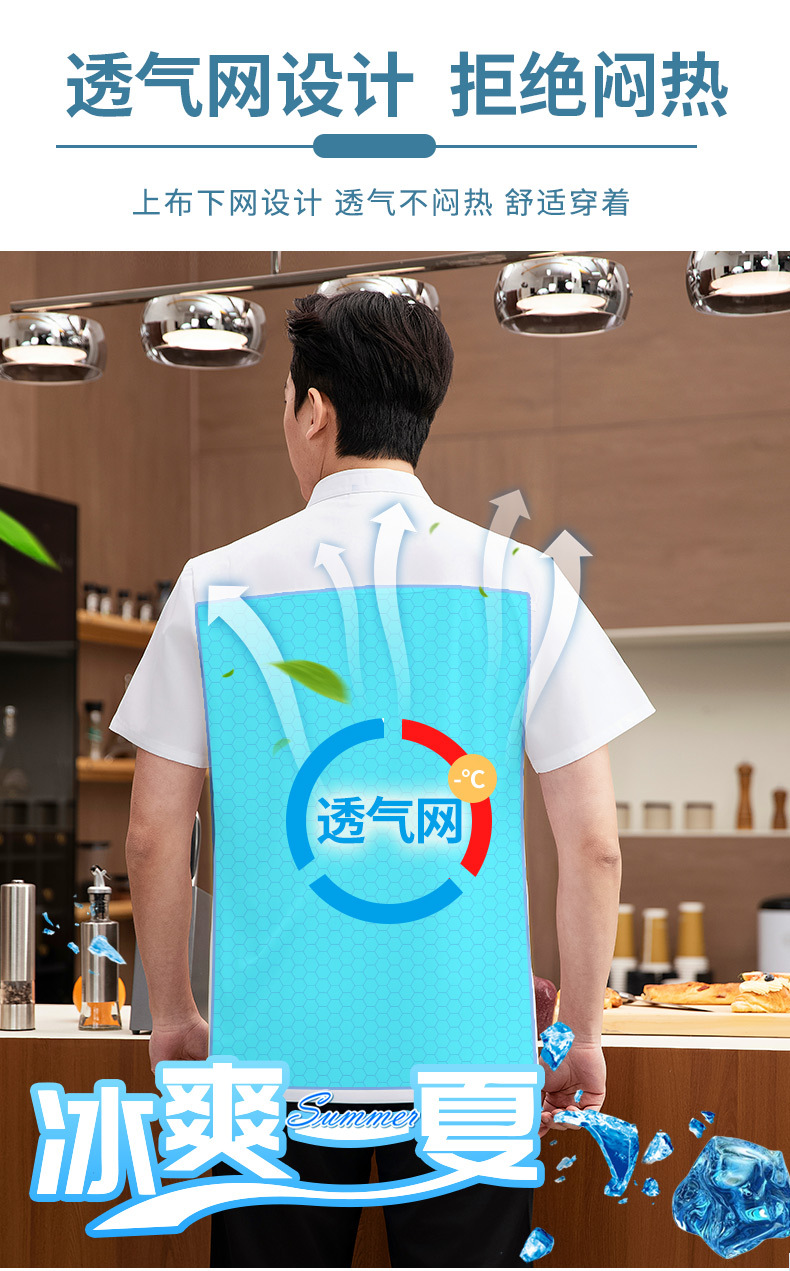 아이스 실크 슬라이딩 소재 요리사 작업 옷 짧은 소매 여름 얇은 통기성 다시 차가운 그물 음식 주방 의류 남성용스토어 가기