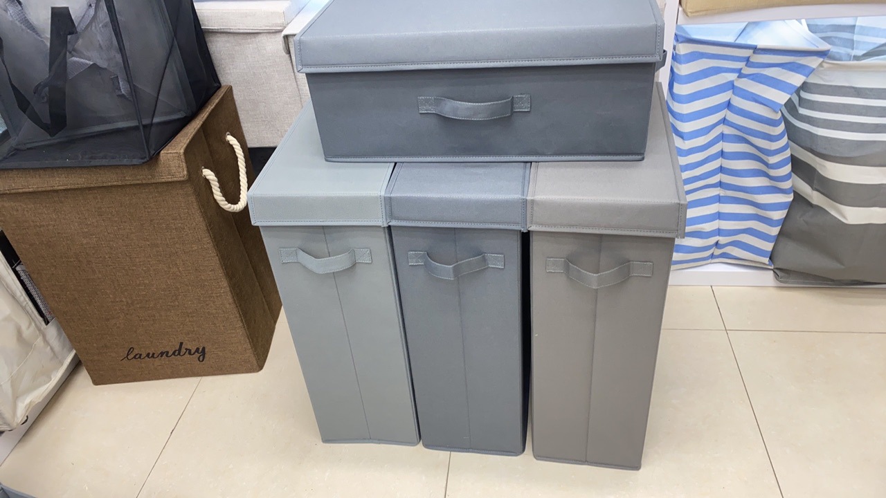 뚜껑과 핸들러 옷으로 접을 수있는 저장 상자 직물 잡화 구획은 저장 상자 방진 보관 상자를 구성합니다.스토어 가기
