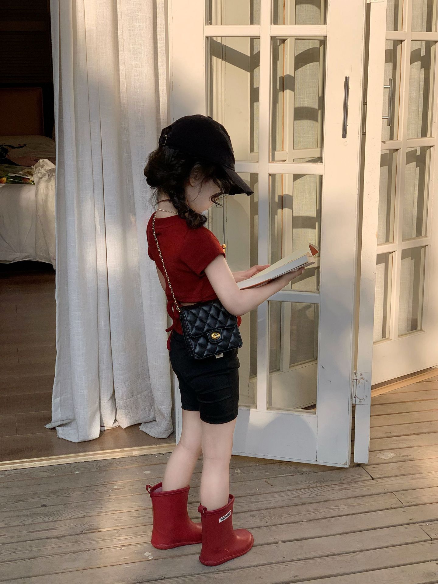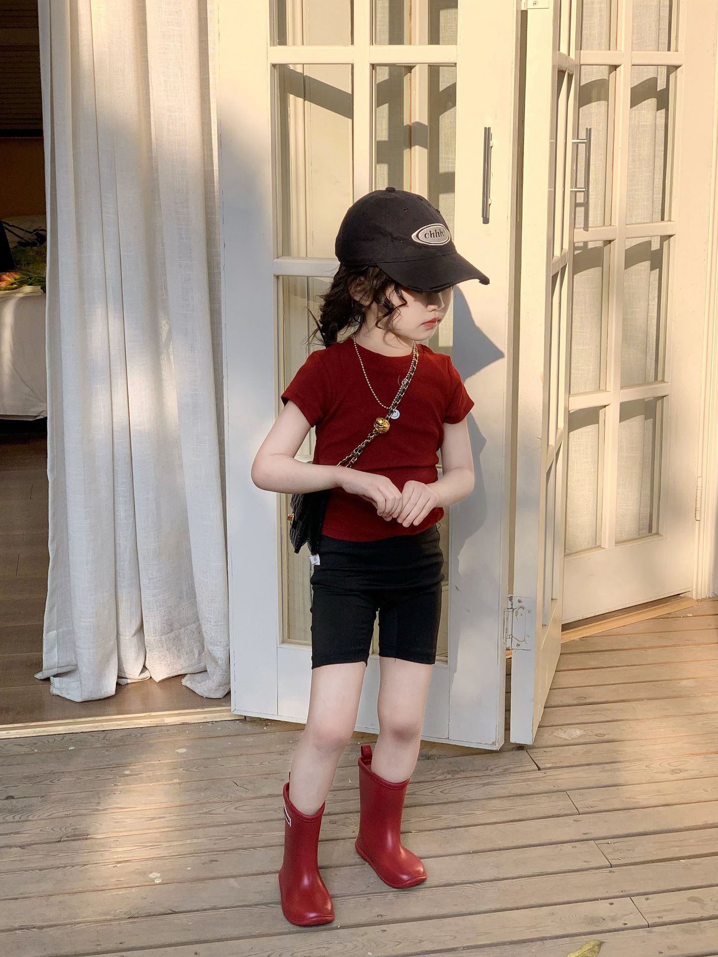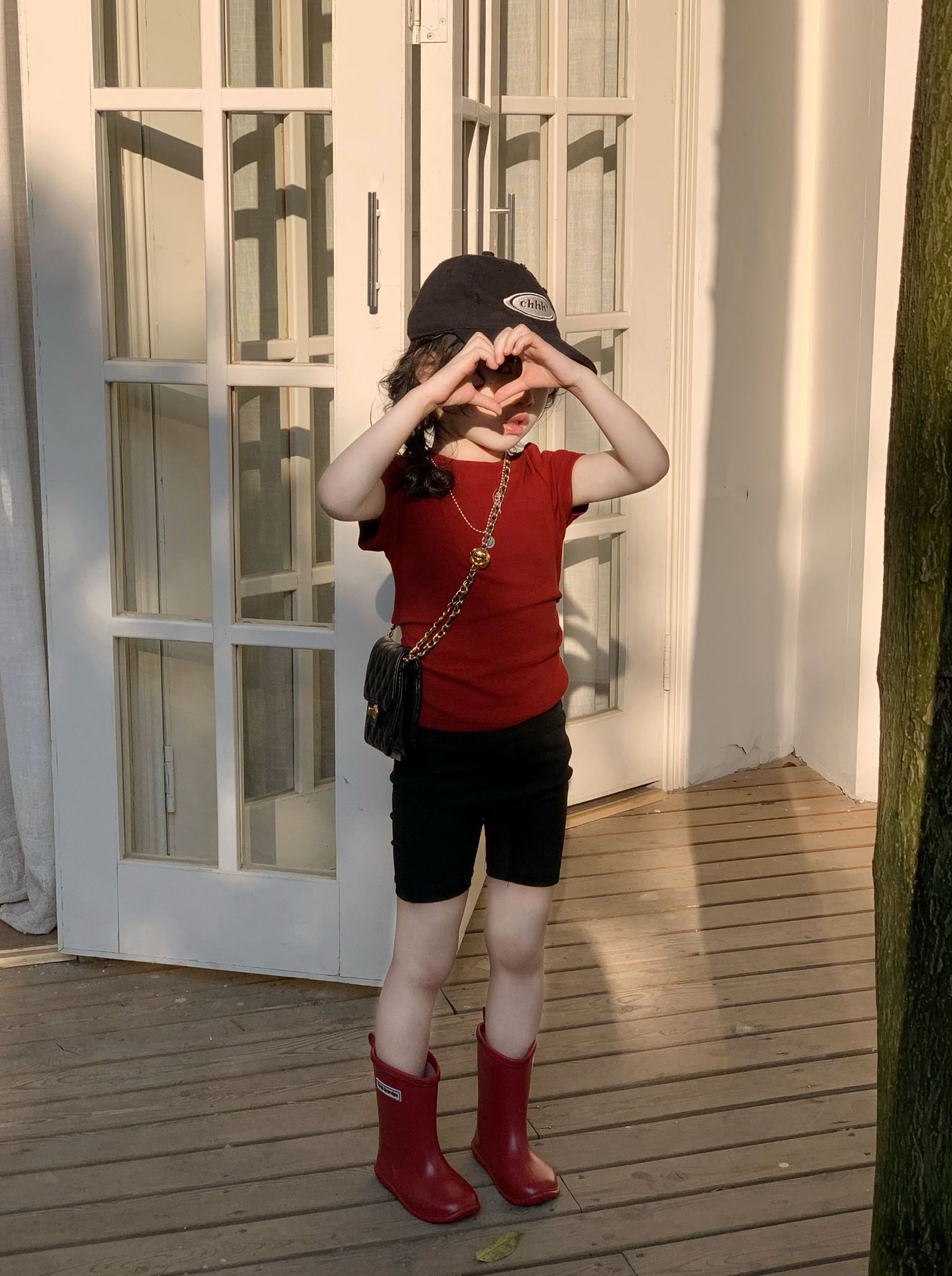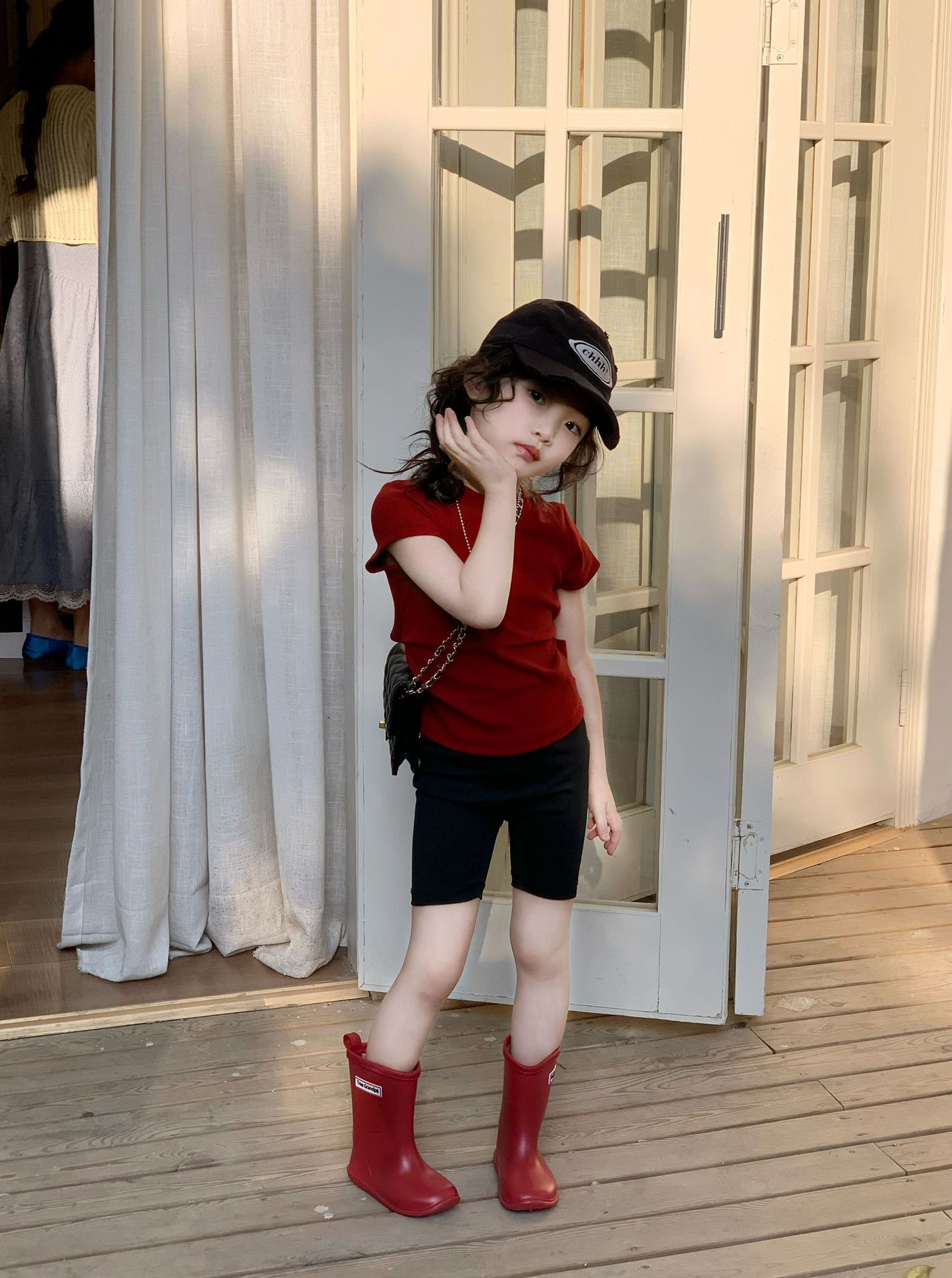 • 빨간 상의