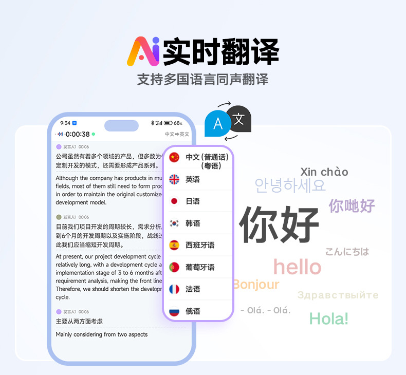 • AI 지능형 전사 버전 [블루투스 모바일 앱 번역]