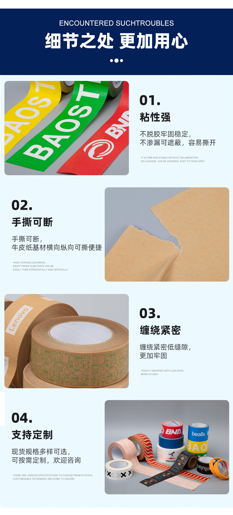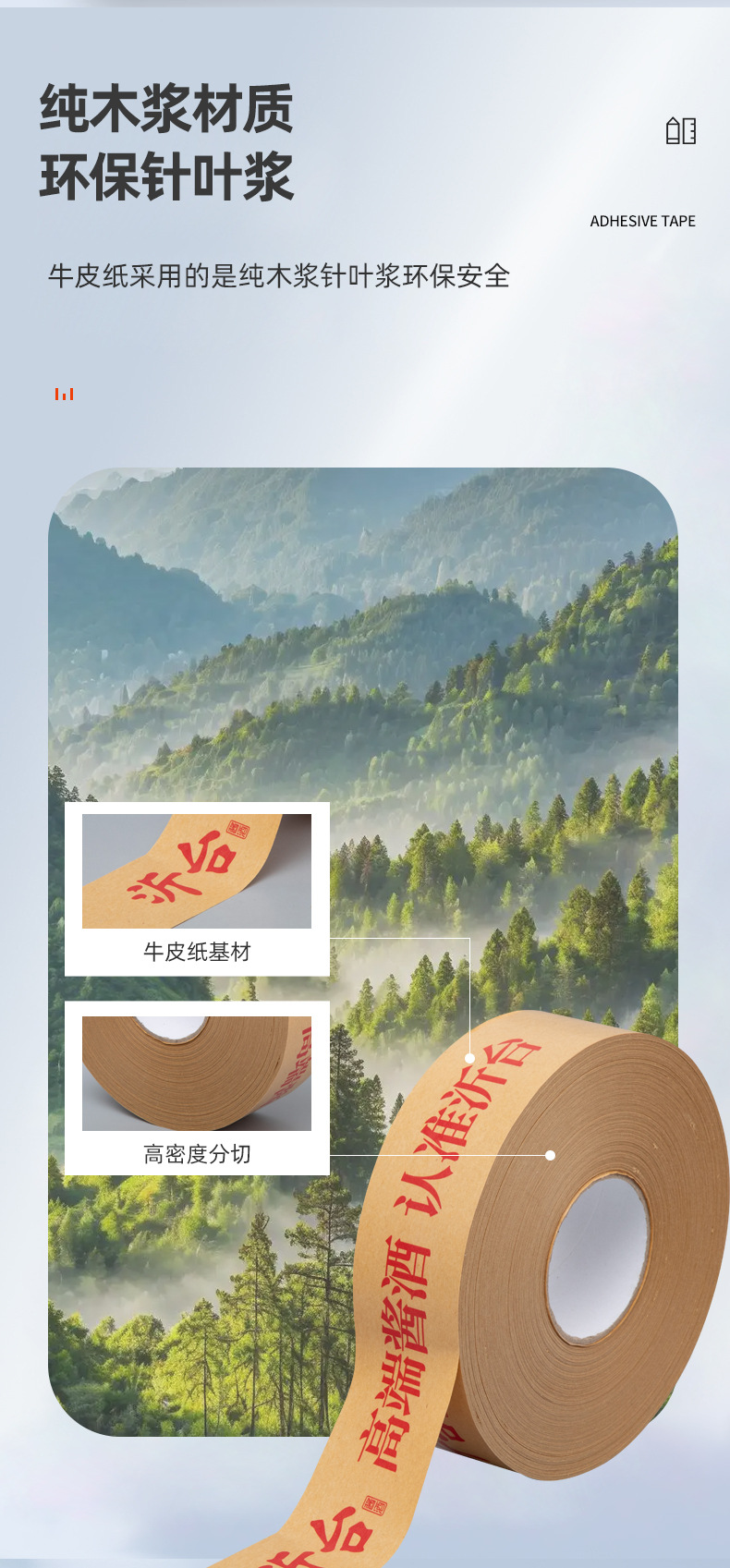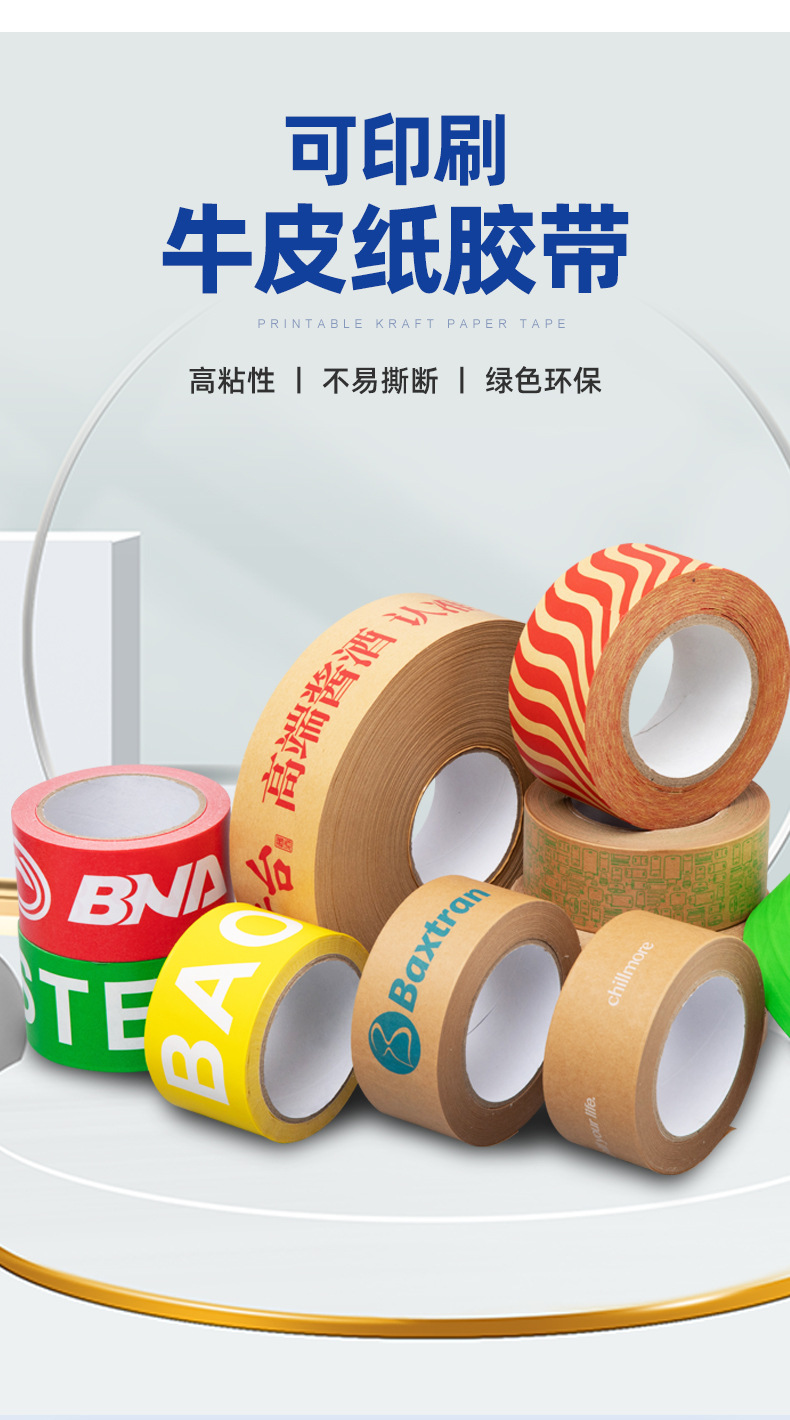 크래프트 종이 테이프 인쇄 패턴 로고 젖은 물 접착제 핫멜트 접착 밀봉 상자 강한 접착제 국경 간 환경 보호 밀봉 테이프