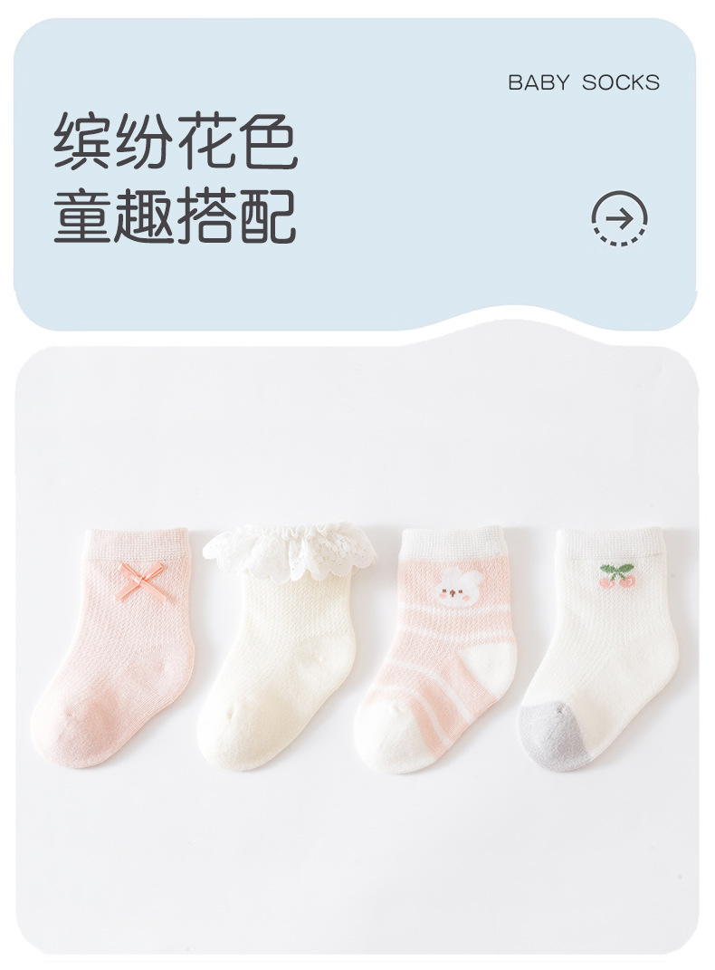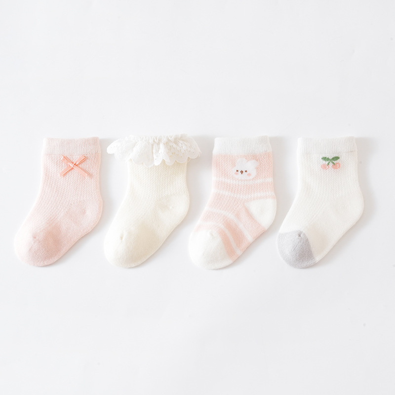 Xiyu Jiachun 여름 새로운 코튼 뼈없는 양말 얇은 메쉬 만화 레이스 나비 아기 양말스토어 가기