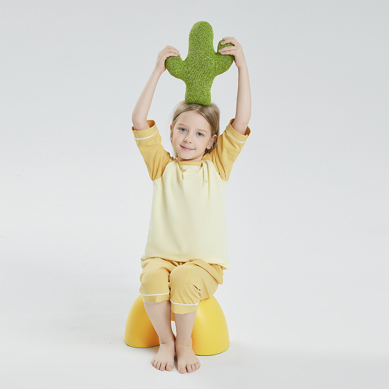 남학생 잠옷 면화 여학생 세븐 포인트 슬리브 세트 남학생 코튼 미드 슬리브 아동용 에어컨 홈 의류 여름 얇은스토어 가기