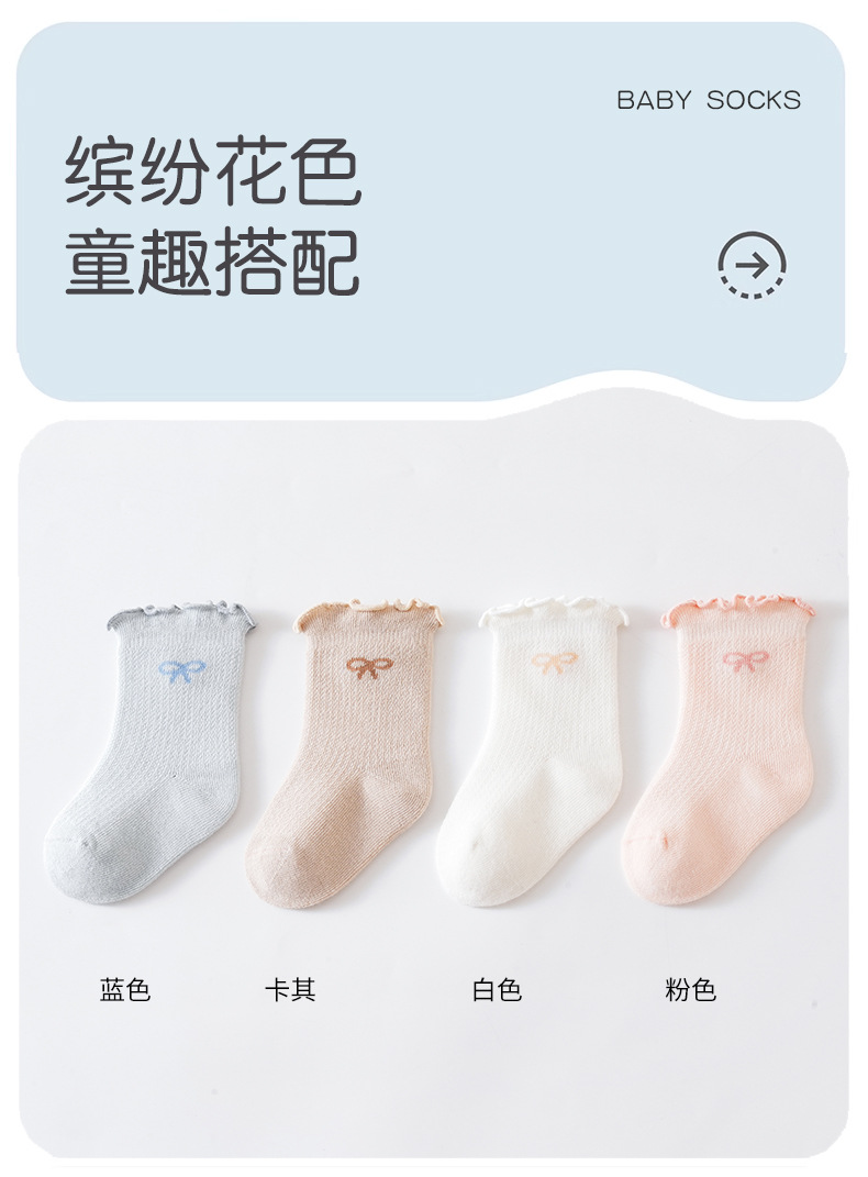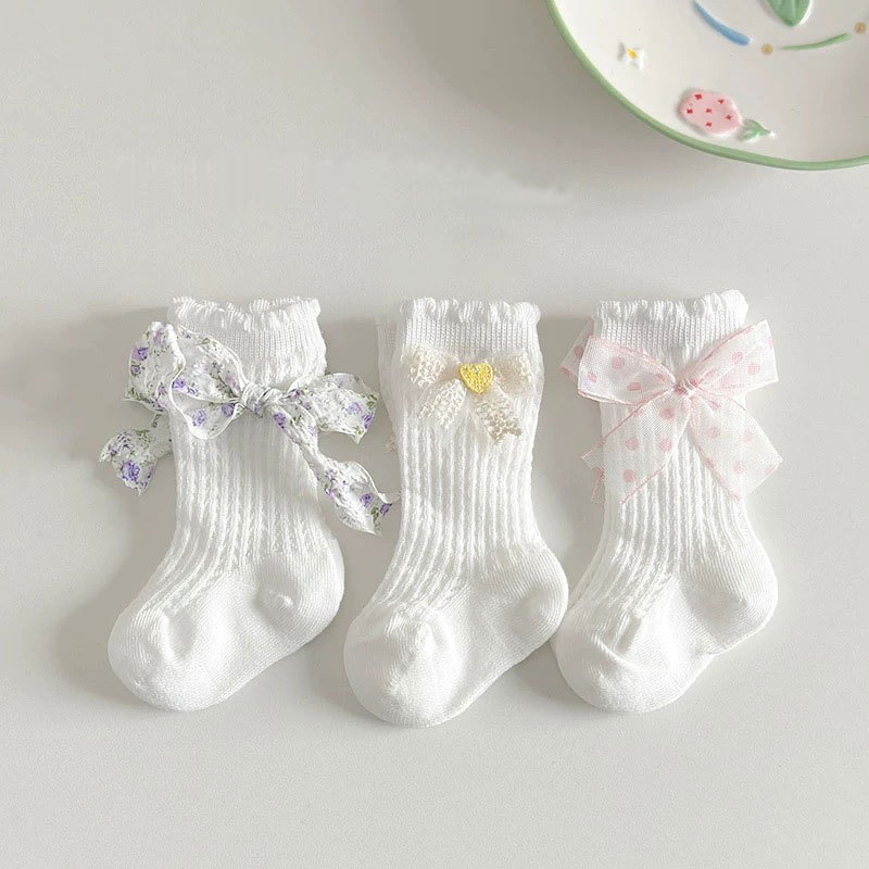 • 메쉬 송아지 양말 - 리본 매듭 조합 3켤레