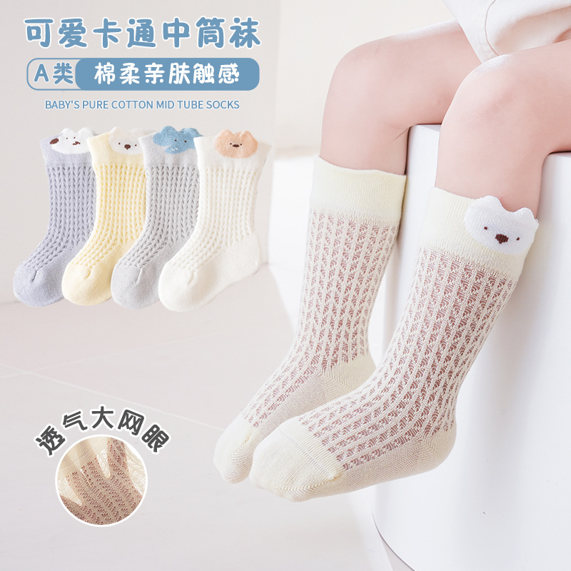 아기 중간 튜브 양말 여름 폭발 신생아 0-3 개월 뼈없는 느슨한 여름 긴 다리 통기성 양말스토어 가기