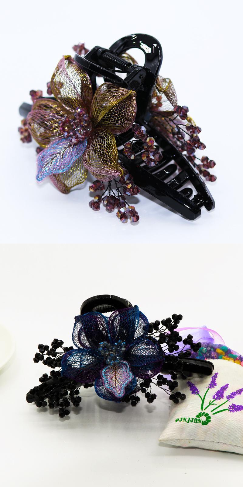하이 엔드 레트로 그랩 클립 여성의 새로운 손으로 짠 나비 상어 클립 우아한 헤어 클립 헤드웨어스토어 가기