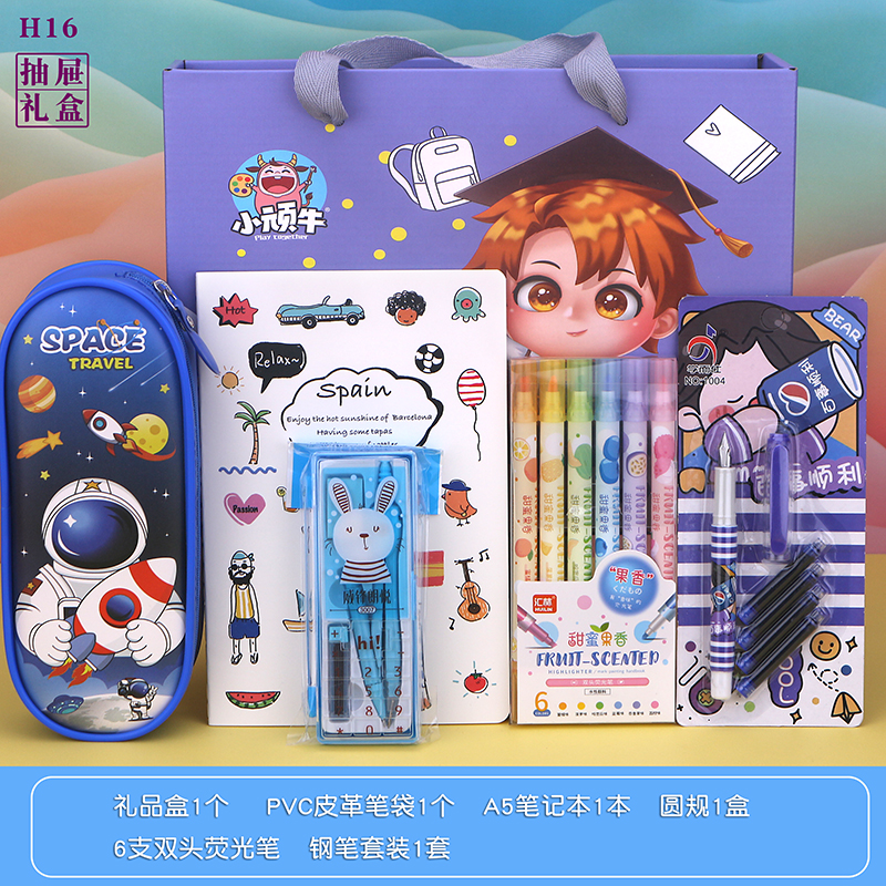 초등학교 문구 세트 선물 상자 생일 선물 상품 학교 용품 귀여운 어린이 문구 큰 선물 상수