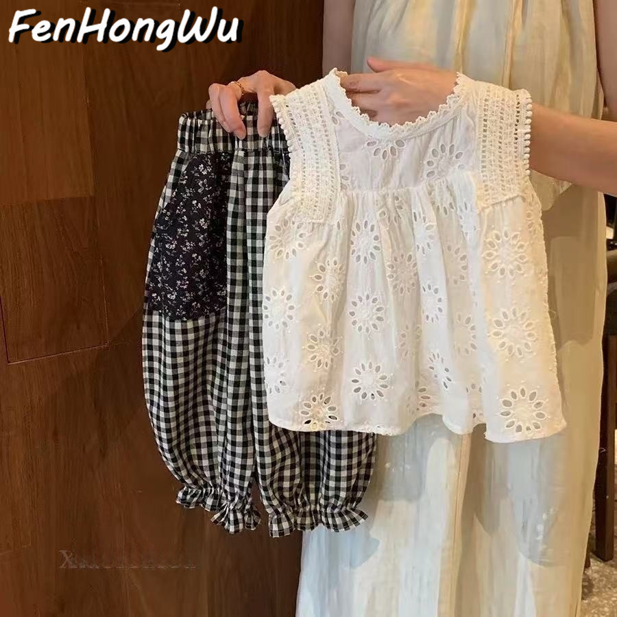 [핑크 집] 소녀의 유행과 서양식 한국 스타일 세트 여름 아기 소녀의 유행 조끼 바지 투피스 세트