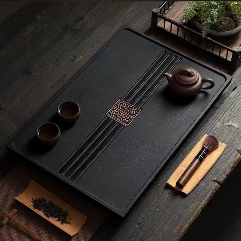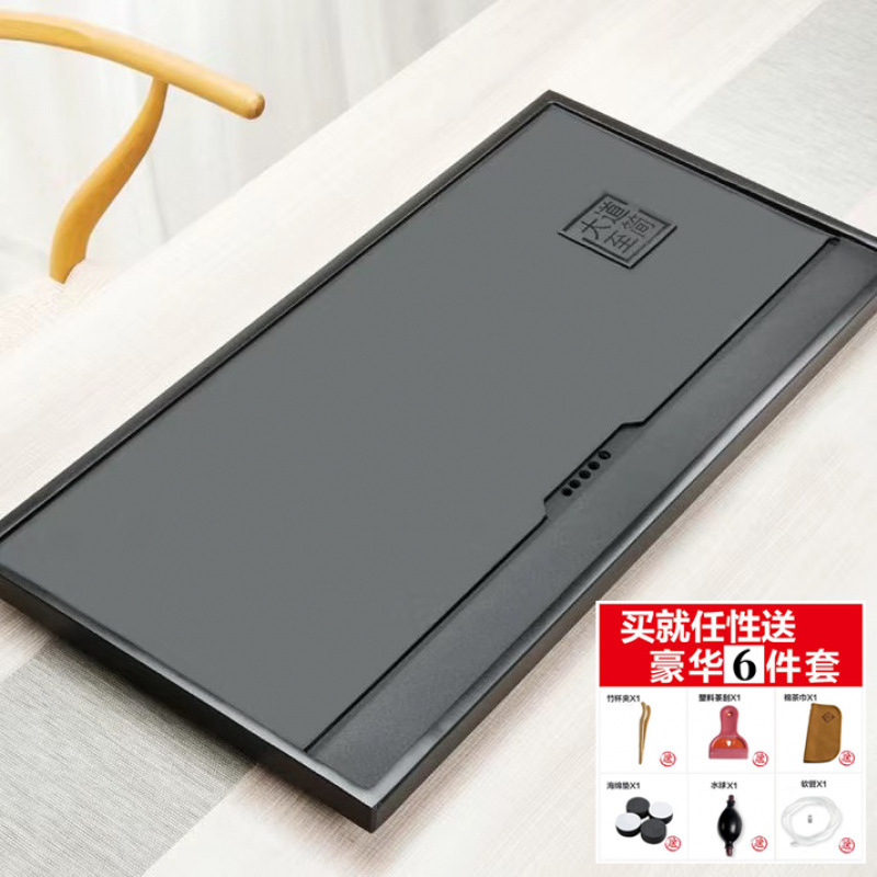 공장 스트레이트 헤어 블랙 골드 스톤 티 트레이 가정용 간단한 티 트레이 배수 슬레이트 차 세트 차 테이블 차 바다 임베디드
