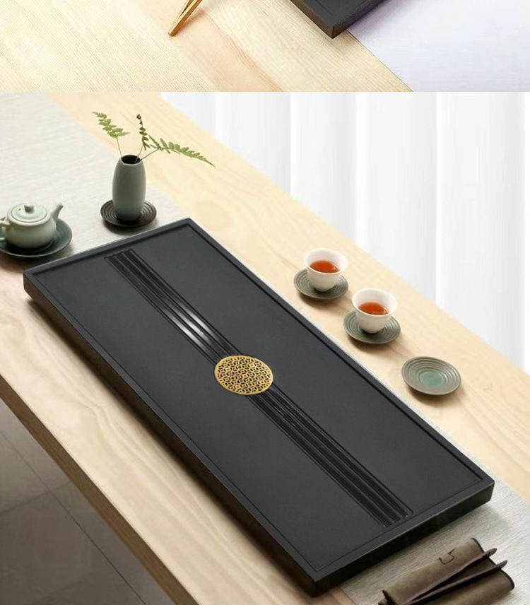 공장 스트레이트 헤어 블랙 골드 스톤 티 트레이 가정용 간단한 티 트레이 배수 슬레이트 차 세트 차 테이블 차 바다 임베디드스토어 가기