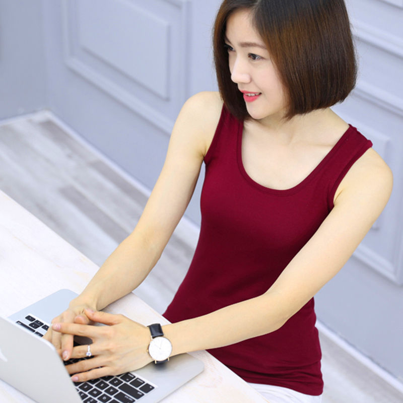 모달 섬유 높은 탄성 카미 솔 여성용 외부 착용 섹시한 내복 모든 경기 민소매 라운드 넥 슬림 핏 캐주얼스토어 가기