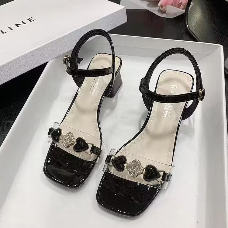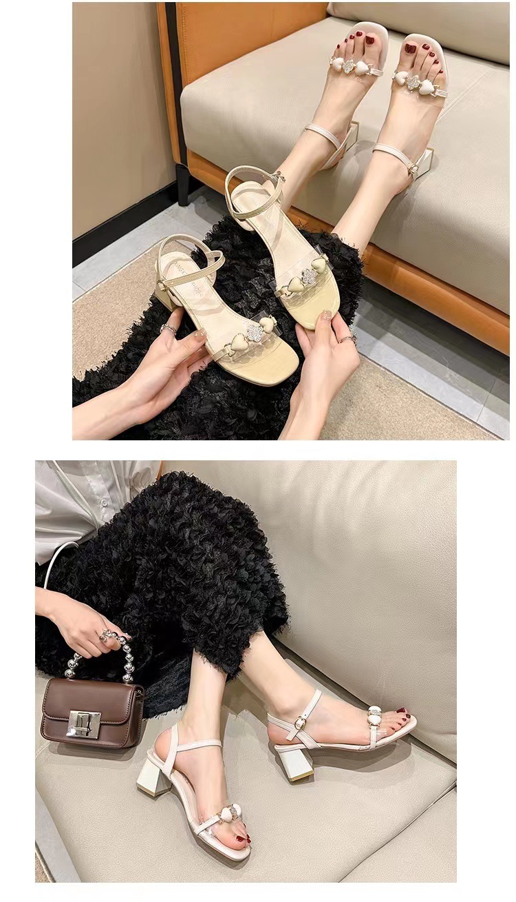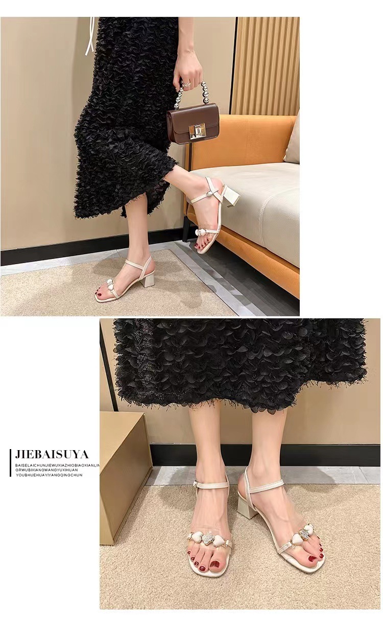 한국 패션 청키 힐 샌들 오픈 발가락 신발 여성 2025 년 여름 새로운 올 매치 하이힐 도매스토어 가기