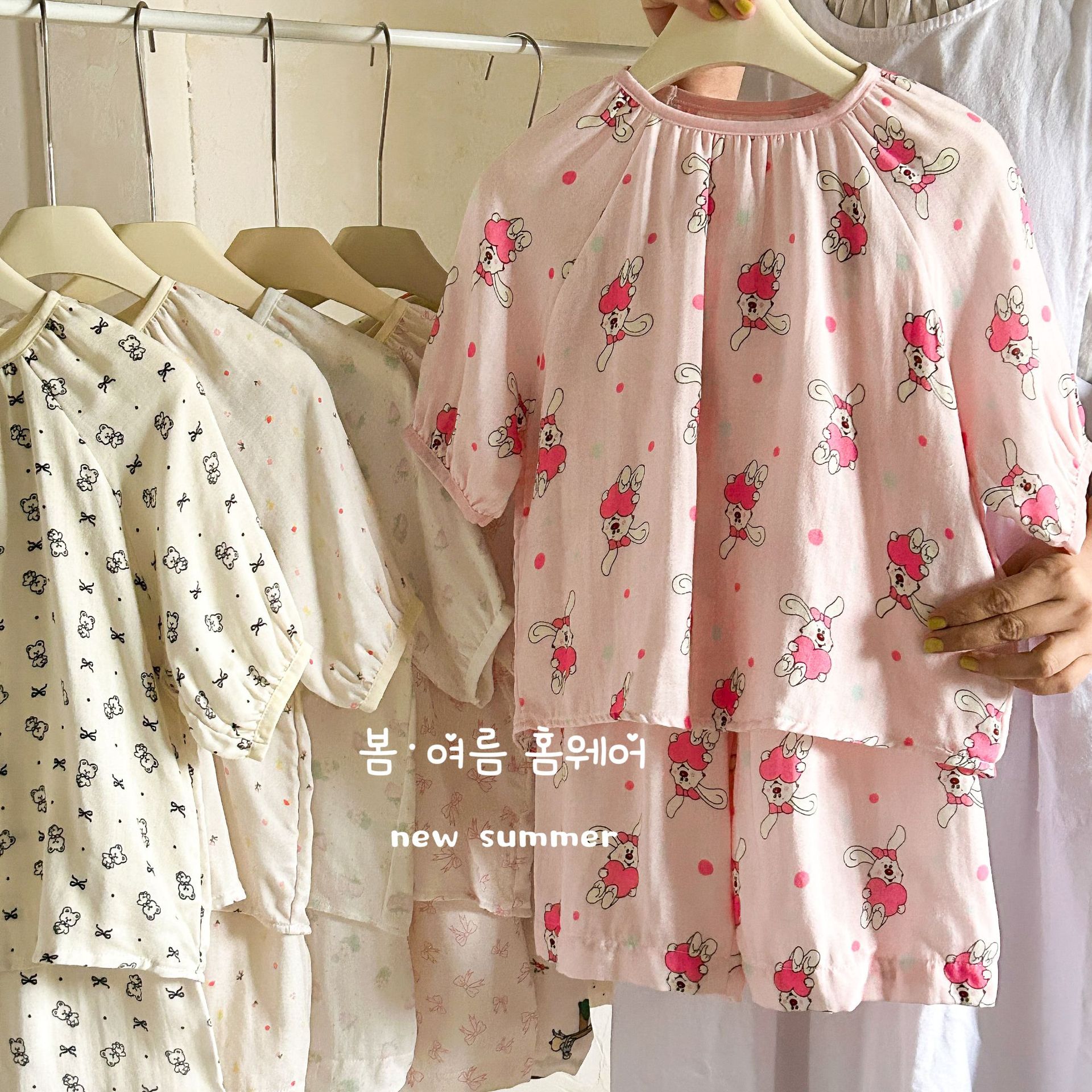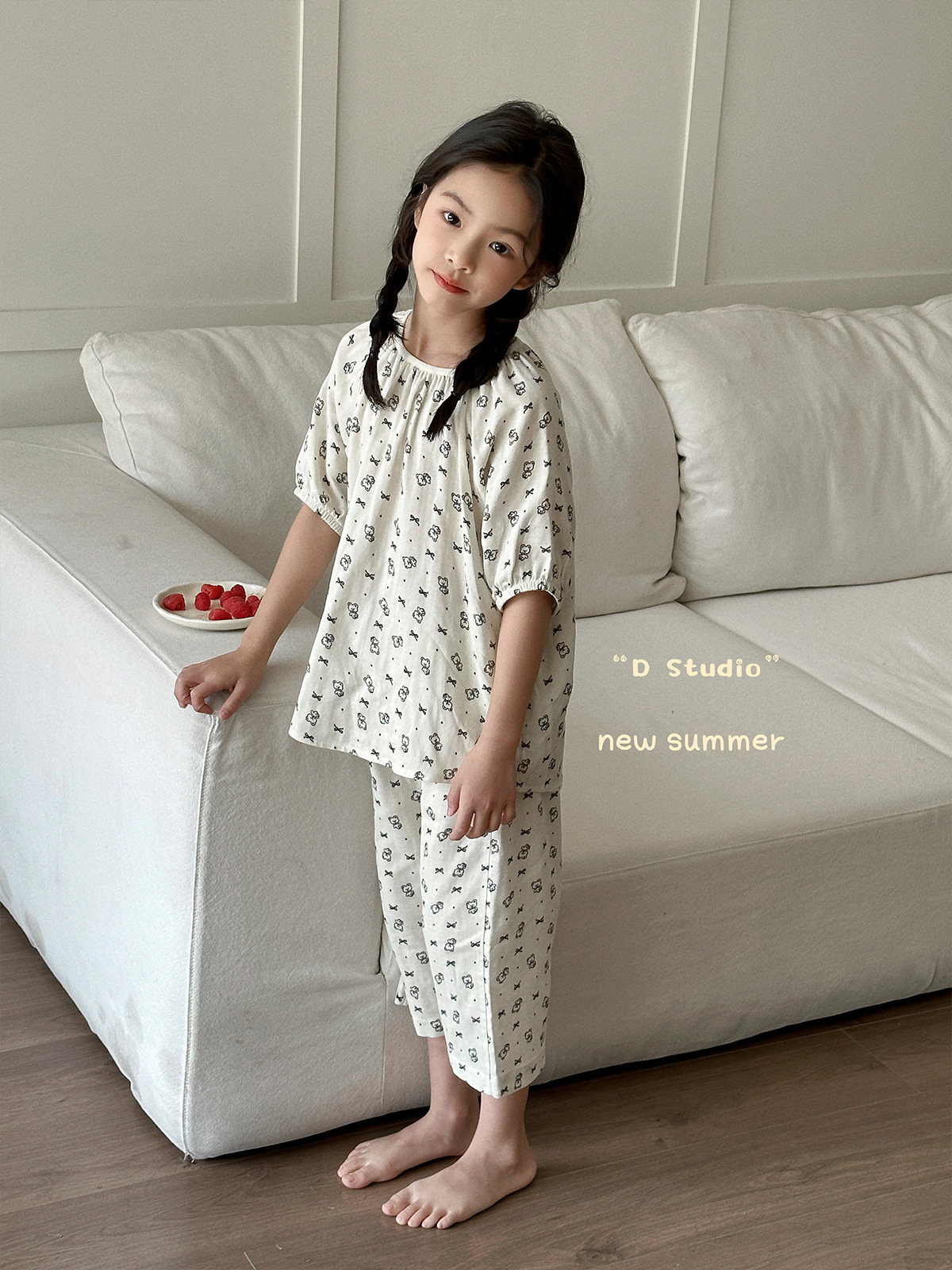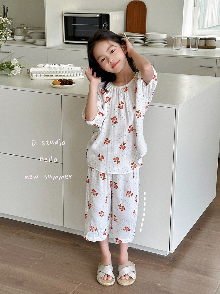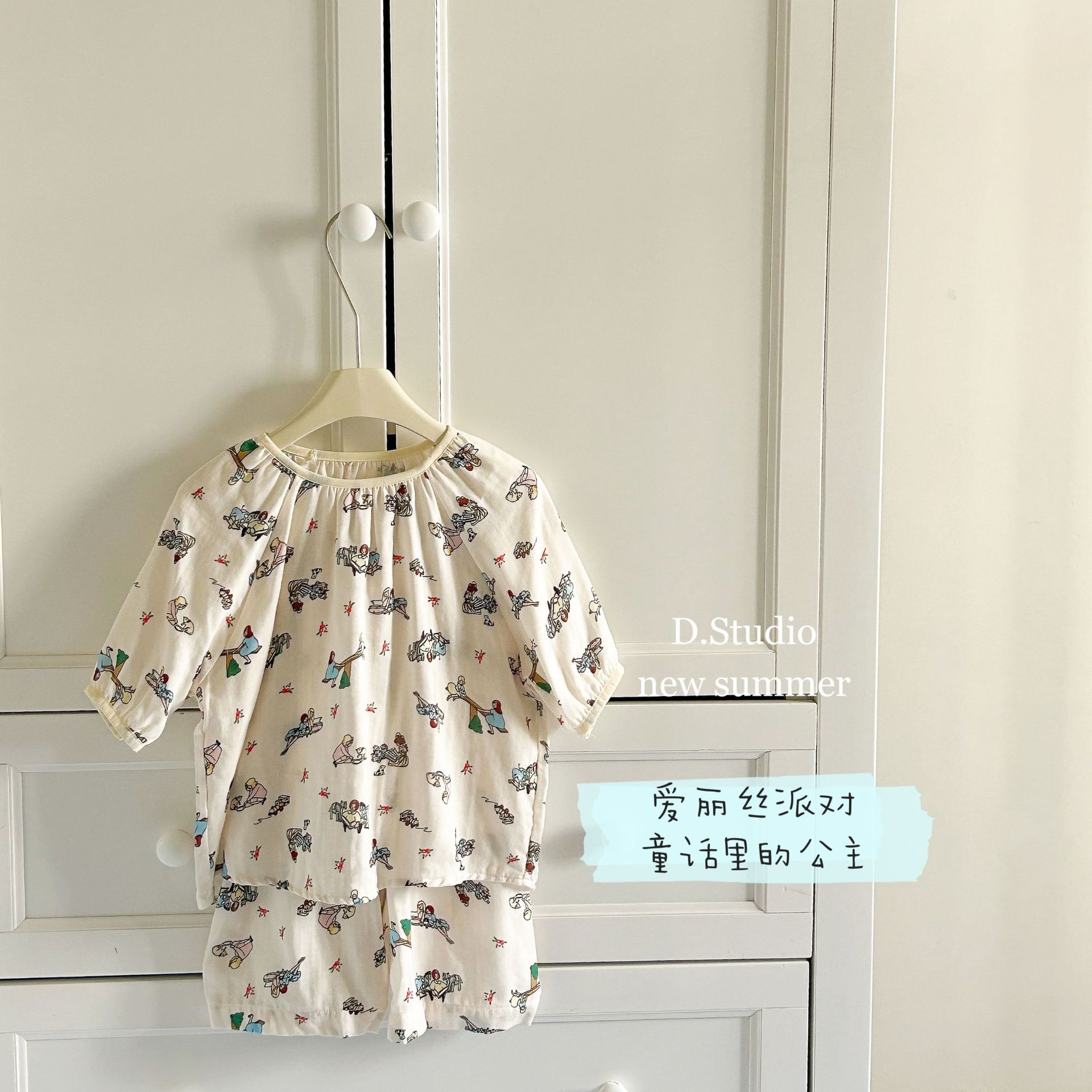 2025 어린이용 대나무 면 홈웨어 세트 여름 얇은 통기성 여자 아이 에어컨 옷 아기 한국 스타일 잠옷 반팔스토어 가기