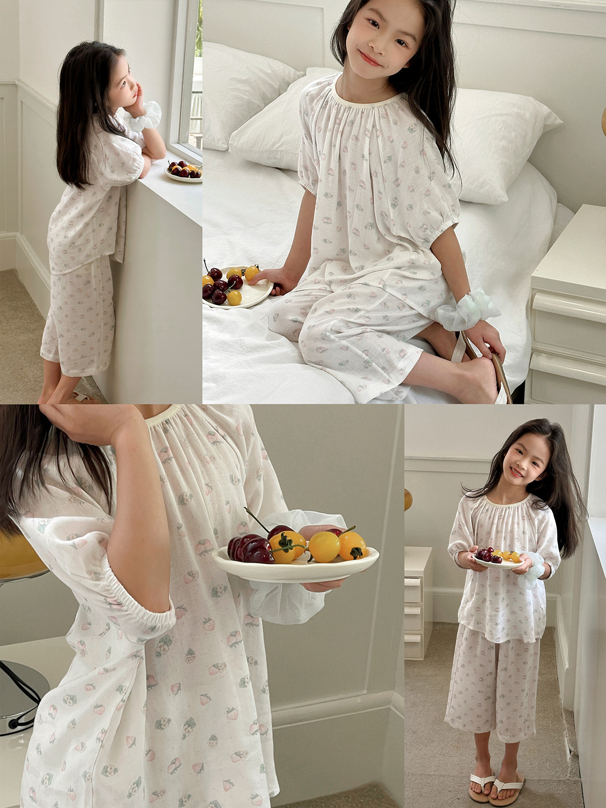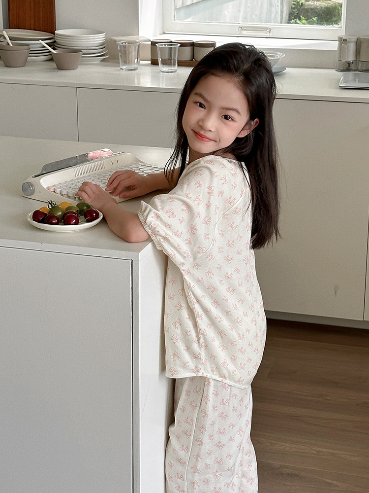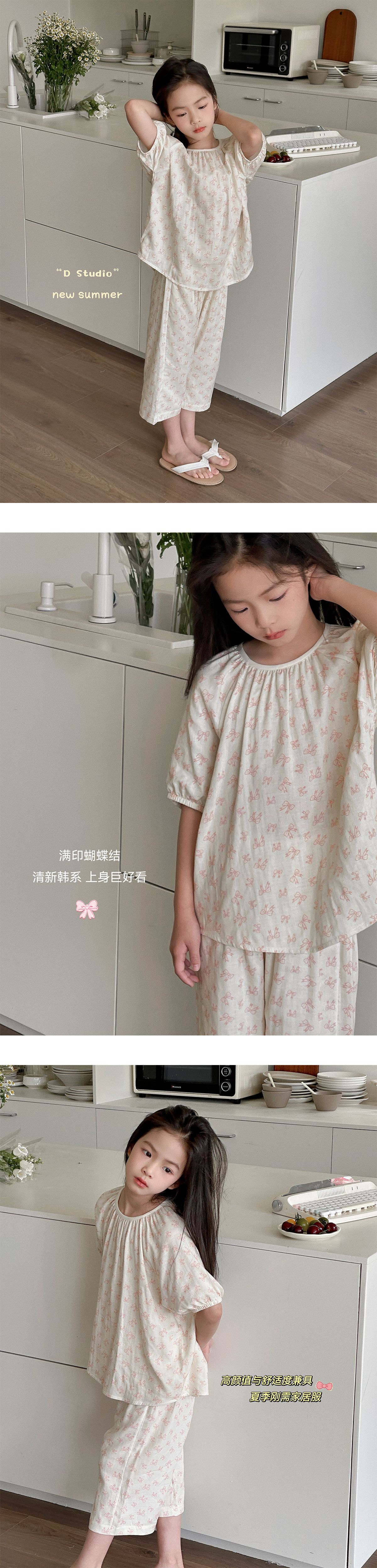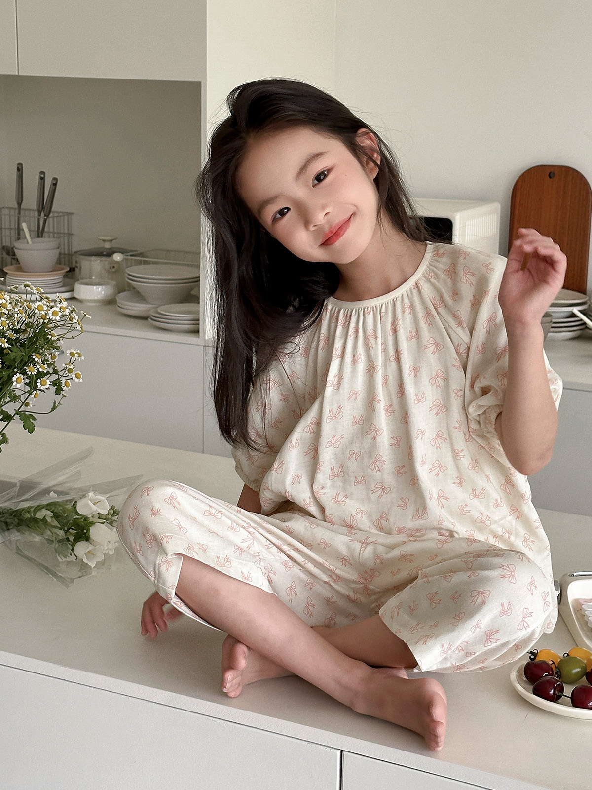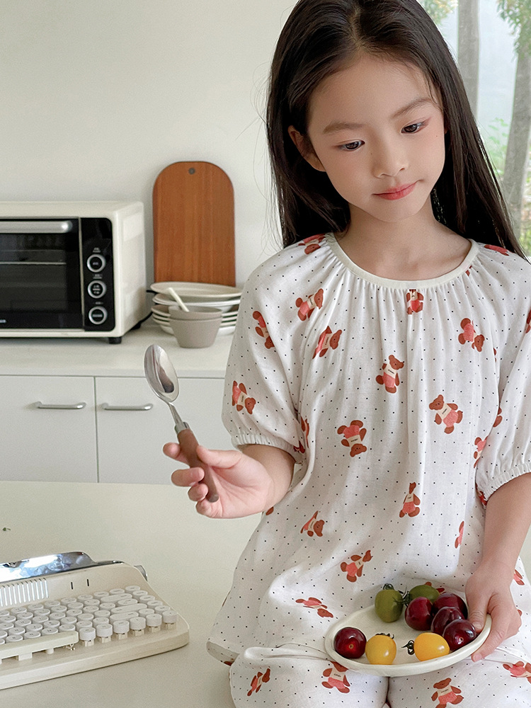 2025 어린이용 대나무 면 홈웨어 세트 여름 얇은 통기성 여자 아이 에어컨 옷 아기 한국 스타일 잠옷 반팔스토어 가기