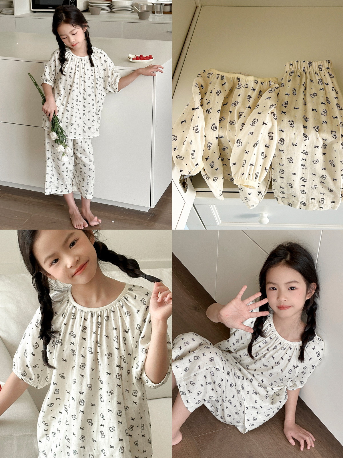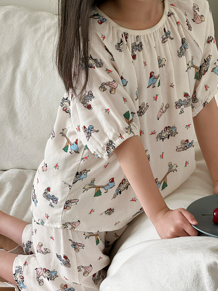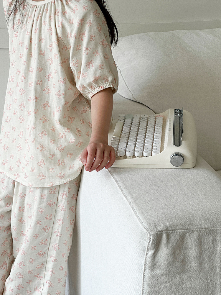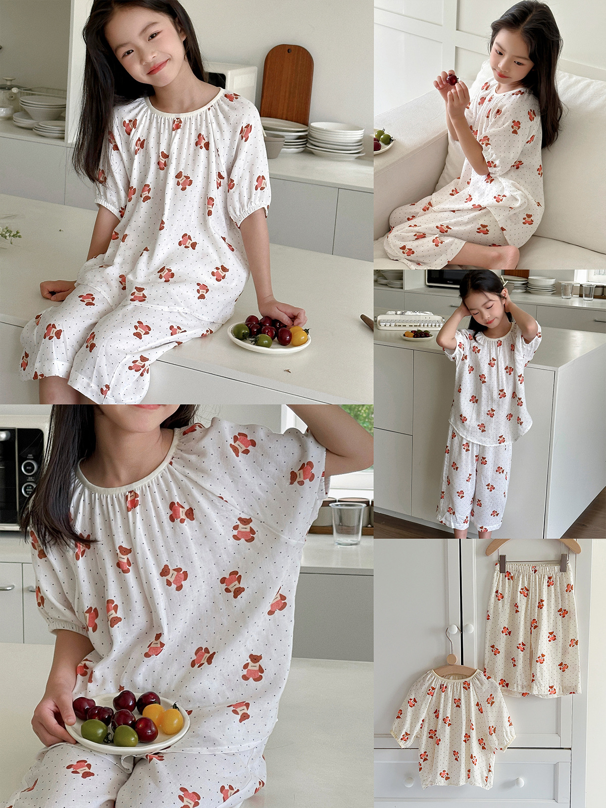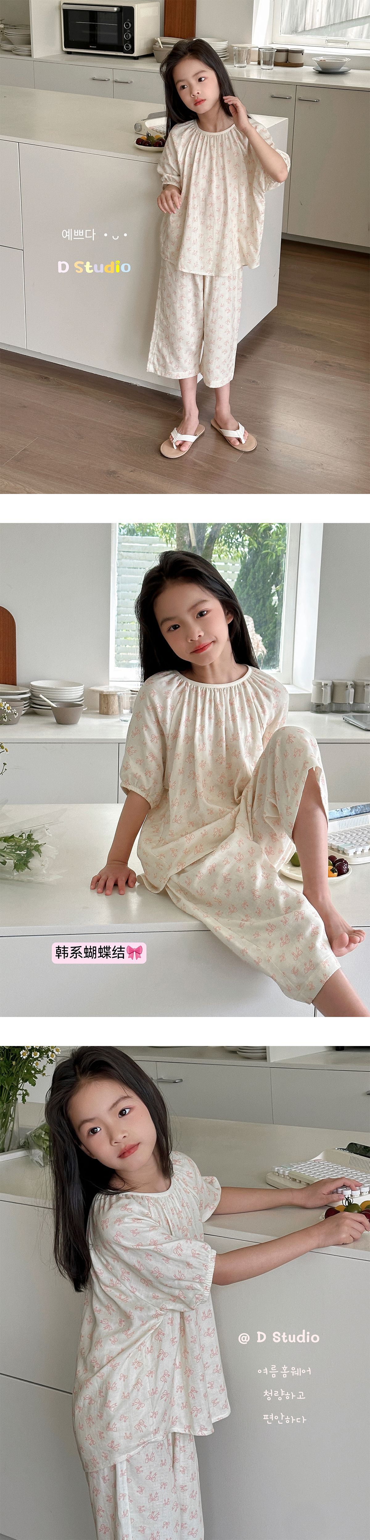2025 어린이용 대나무 면 홈웨어 세트 여름 얇은 통기성 여자 아이 에어컨 옷 아기 한국 스타일 잠옷 반팔스토어 가기