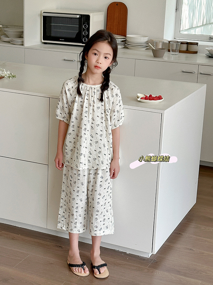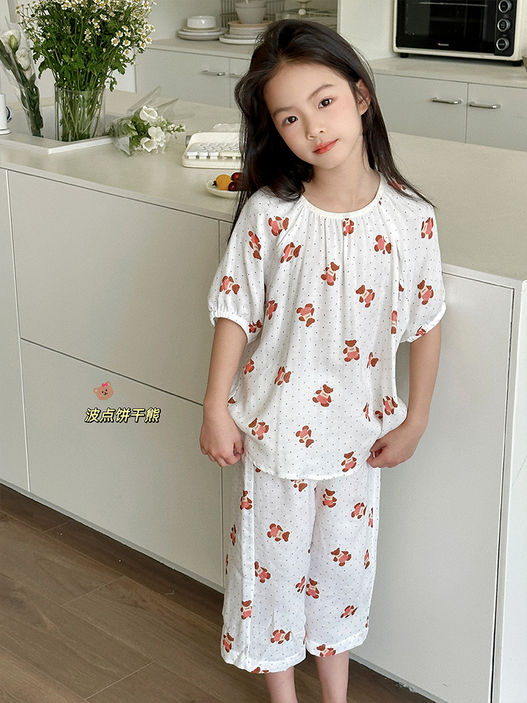 2025 어린이용 대나무 면 홈웨어 세트 여름 얇은 통기성 여자 아이 에어컨 옷 아기 한국 스타일 잠옷 반팔