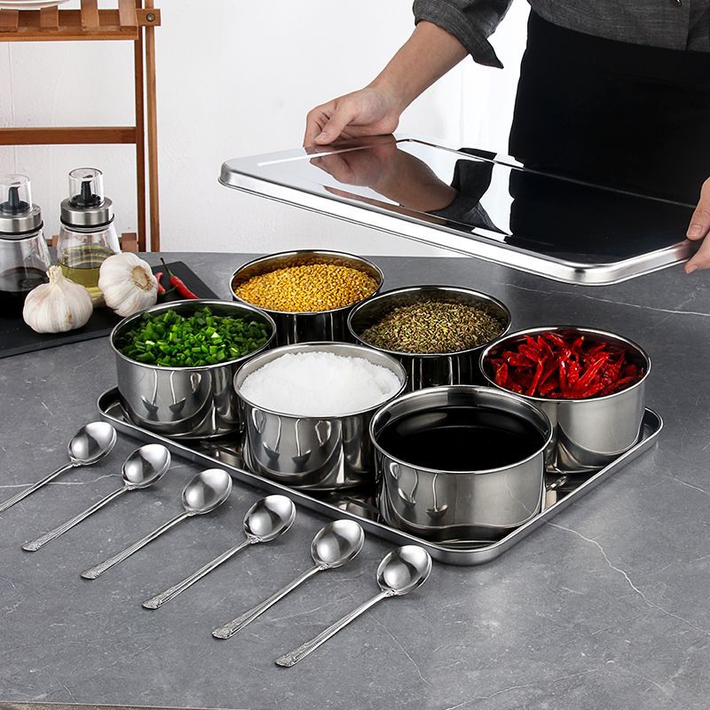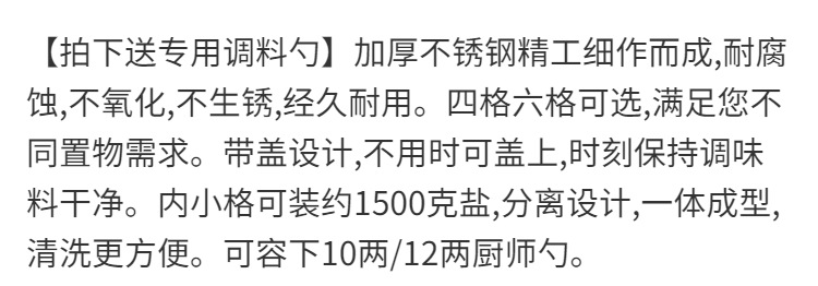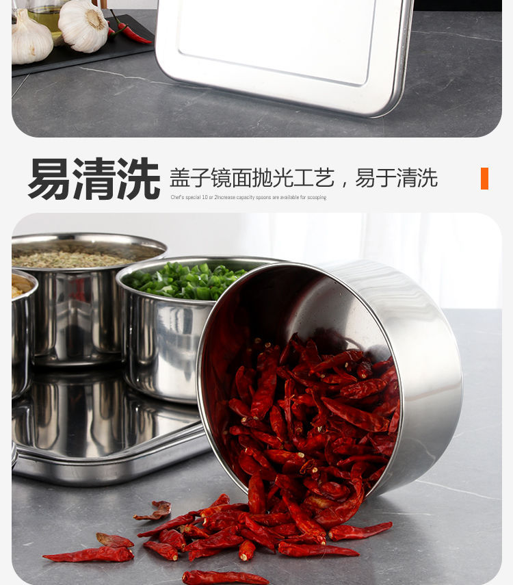 뚜껑이있는 호텔 조미료 상자 6 칸 4 칸 슈퍼 주방 상자 대형 세트 조미료 상자 상업용 매점 스테인레스 스틸
