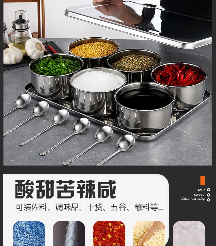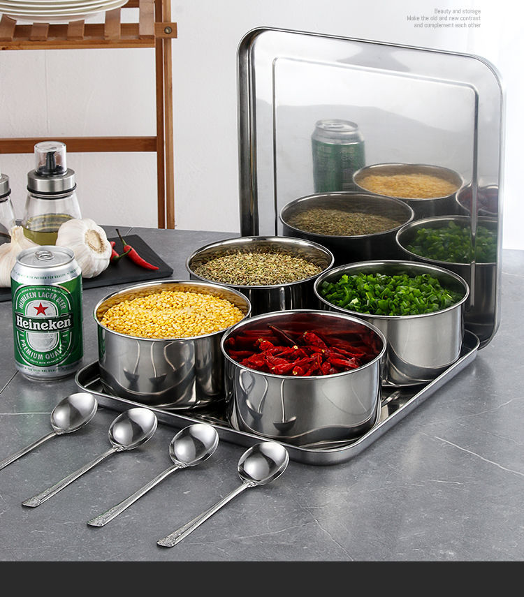 뚜껑이있는 호텔 조미료 상자 6 칸 4 칸 슈퍼 주방 상자 대형 세트 조미료 상자 상업용 매점 스테인레스 스틸스토어 가기