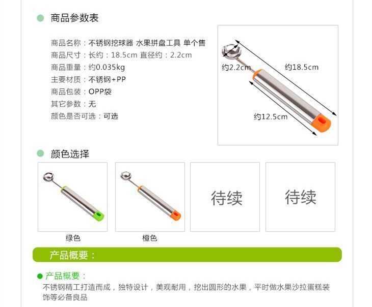 과일 제공 아이스크림 다기능 과일 포크 스테인레스 스틸 수박 파기 스푼 37 조각 볼 파기 29 파기스토어 가기