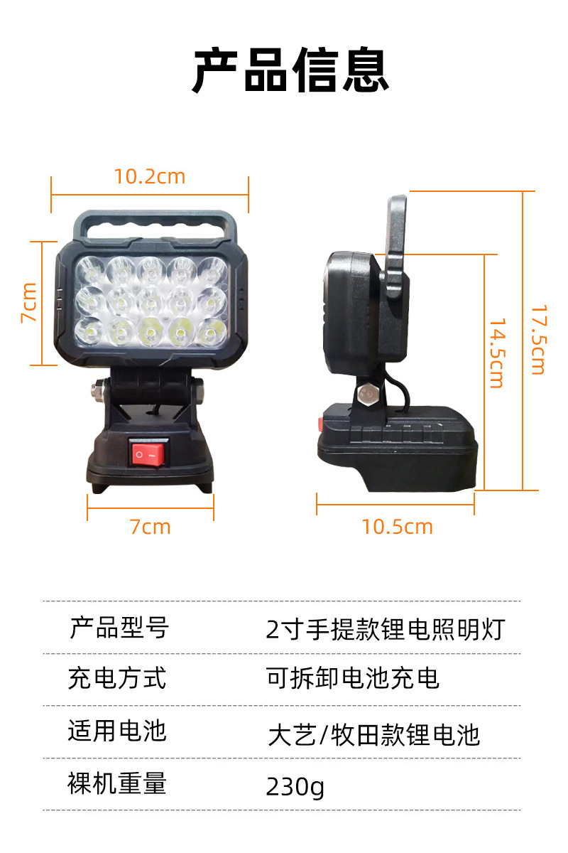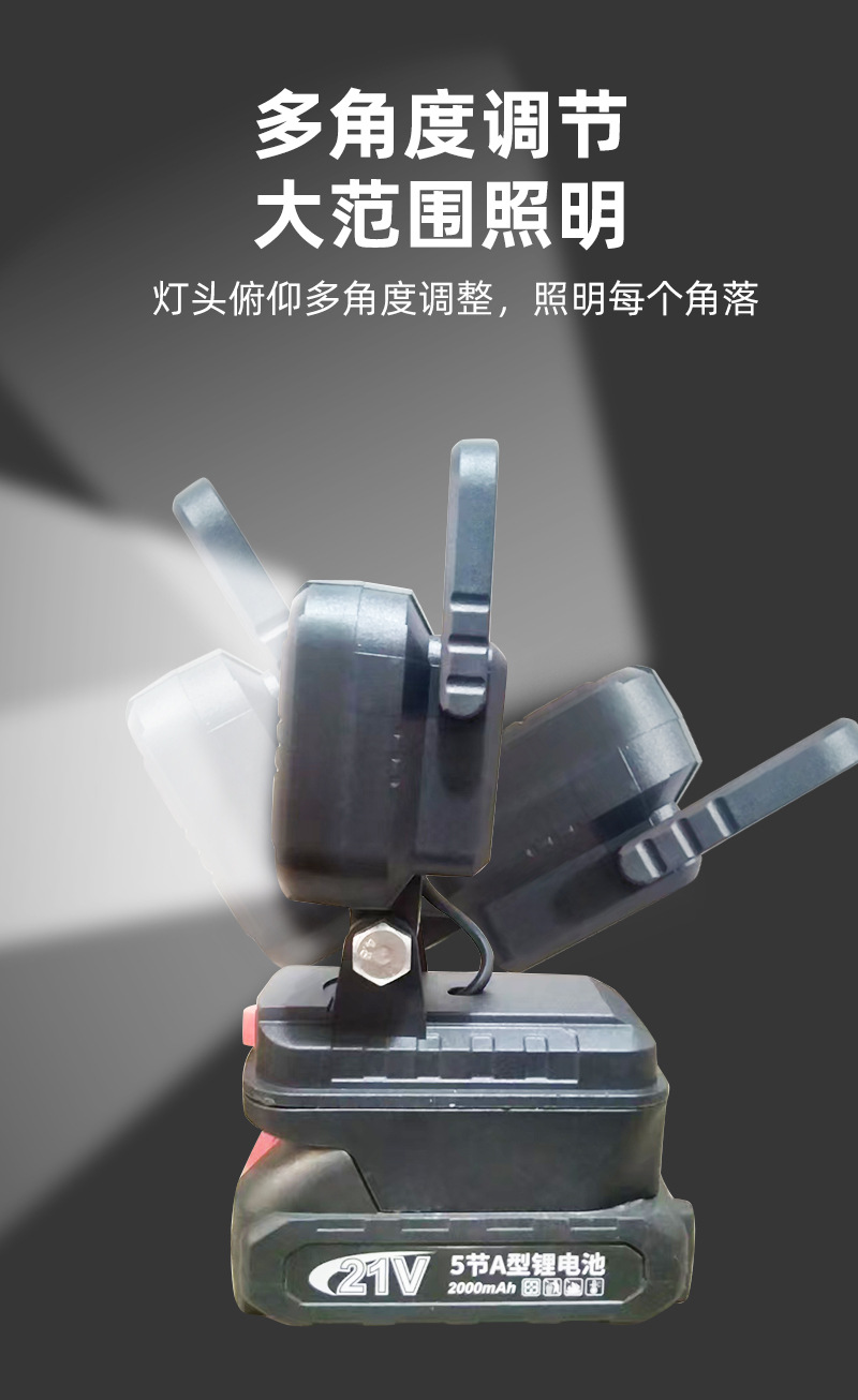 2 인치 조명 램프 휴대용 전원 도구 리튬 배터리 캠핑 유지 보수 낚시 사이트 야외 휴대용 작업 조명