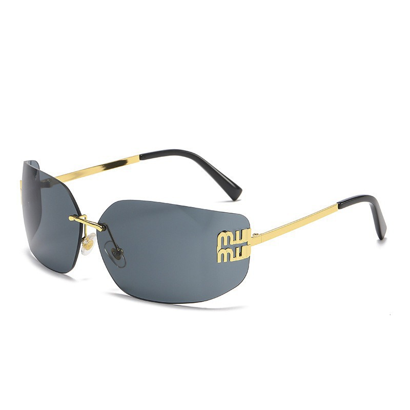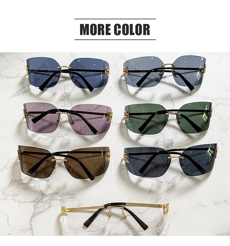 2025 새로운 프레임없는 유럽과 미국의 선글라스 큰 프레임 패션 개성 복고풍 다크 브라운 곡선 표면 인터넷 유명한 선글라스스토어 가기